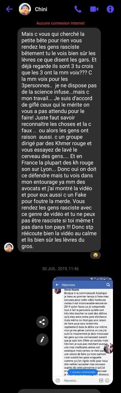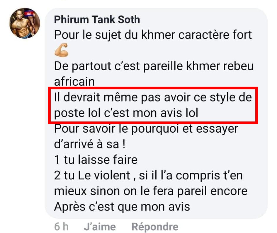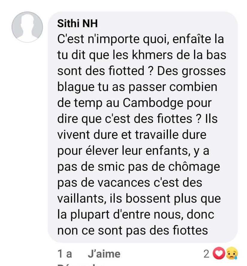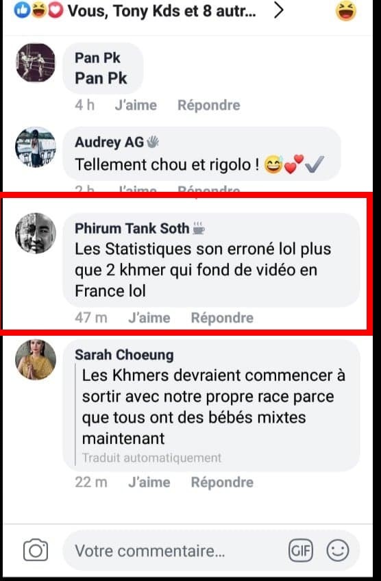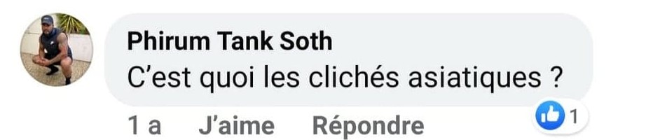 Ce même Phirum commente ma publication en commentant avec culot ceci "Quel cliché asiatique?" " (screeen ci-dessous)