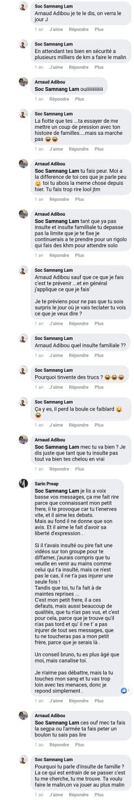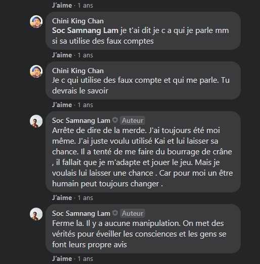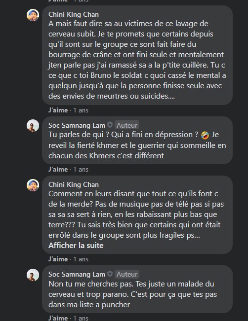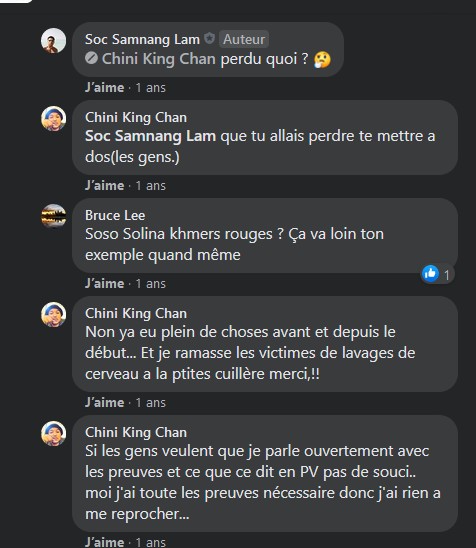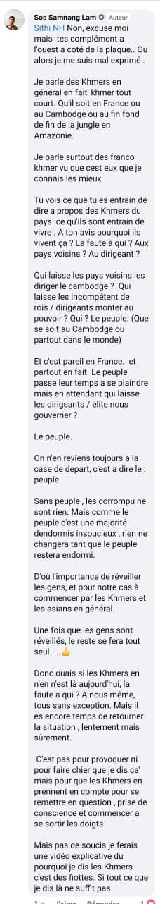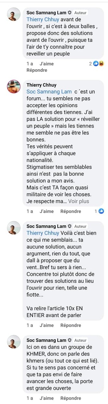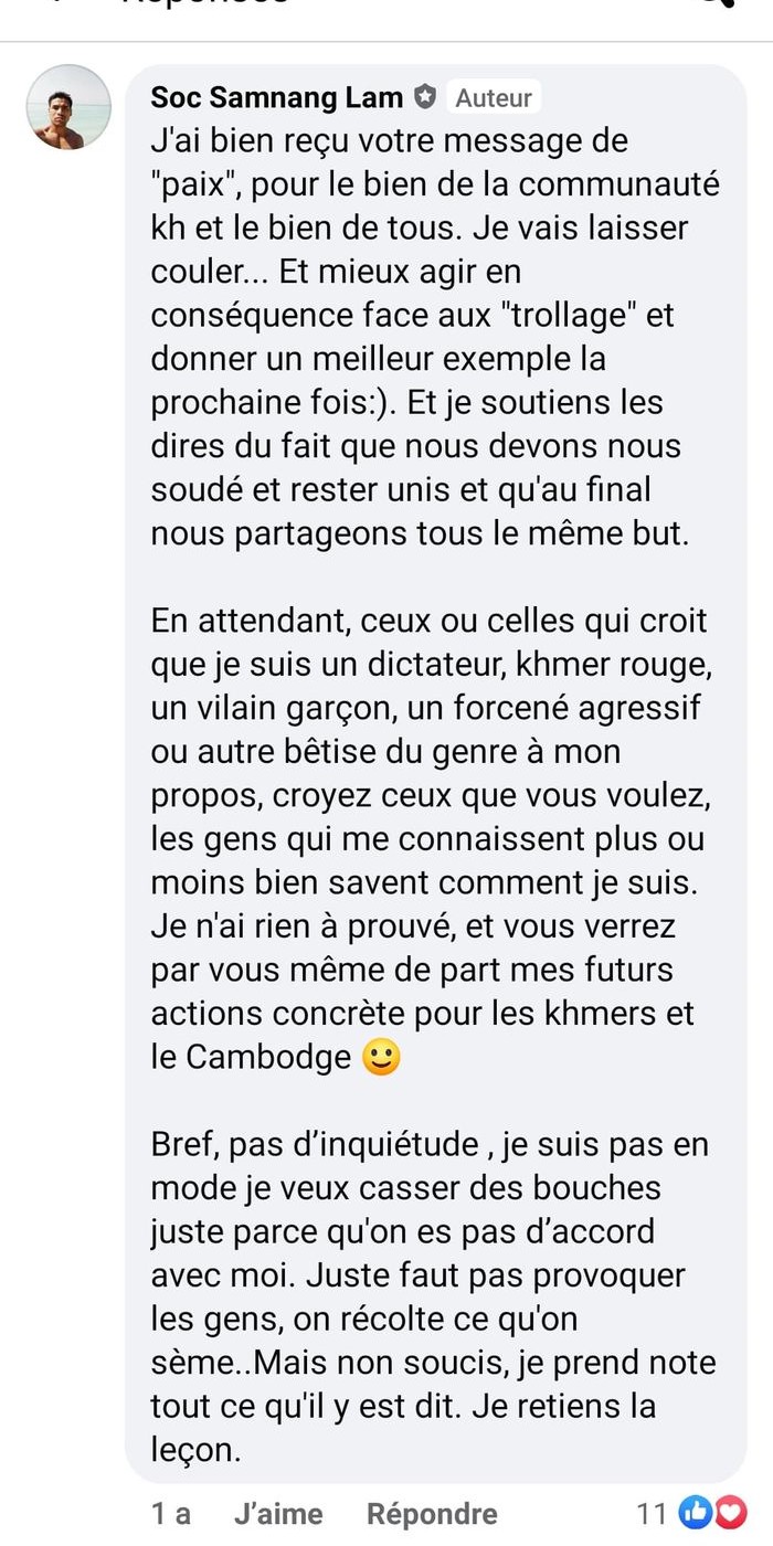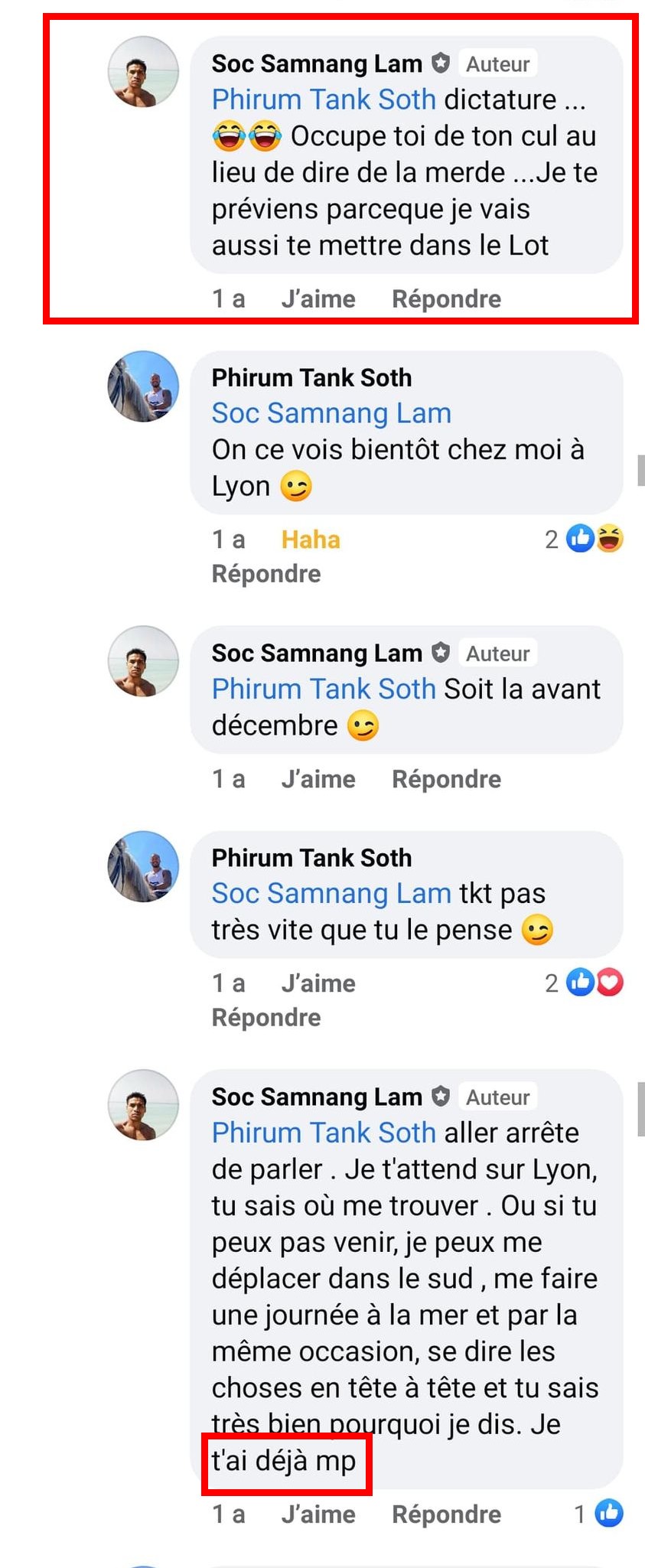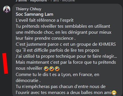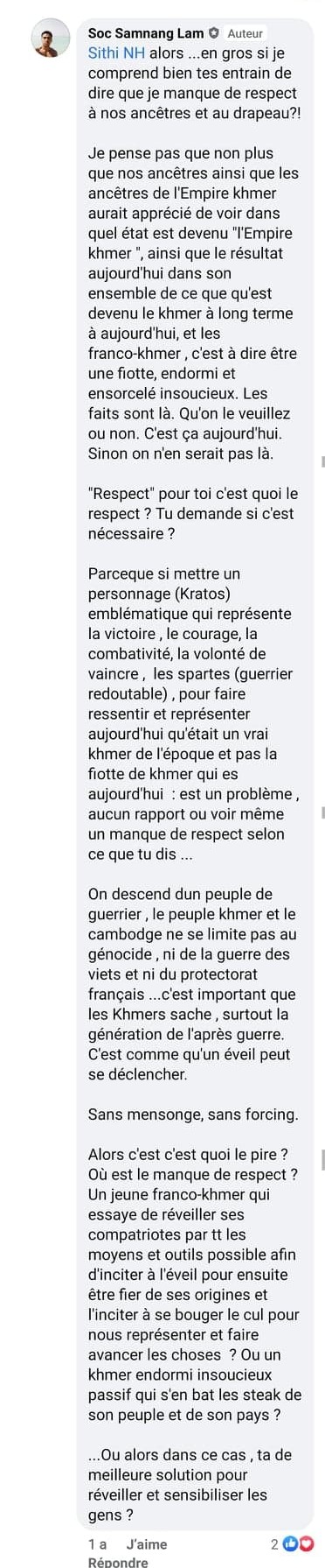 C'est à cette période moment là que le Phirum commençait à montrer de plus en plus son visage toujours en cherchant à troller "gentiment" toujours un pic de provocation, avec ces genres de commentaire suivants sur l'éveil Franco Khmer et toujours dans mes propres publications :