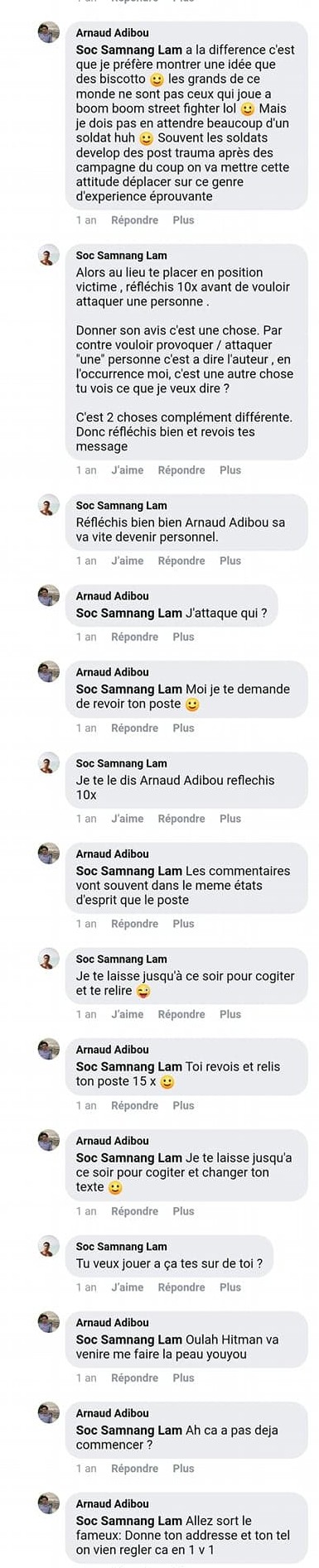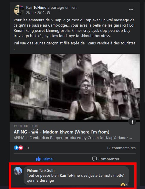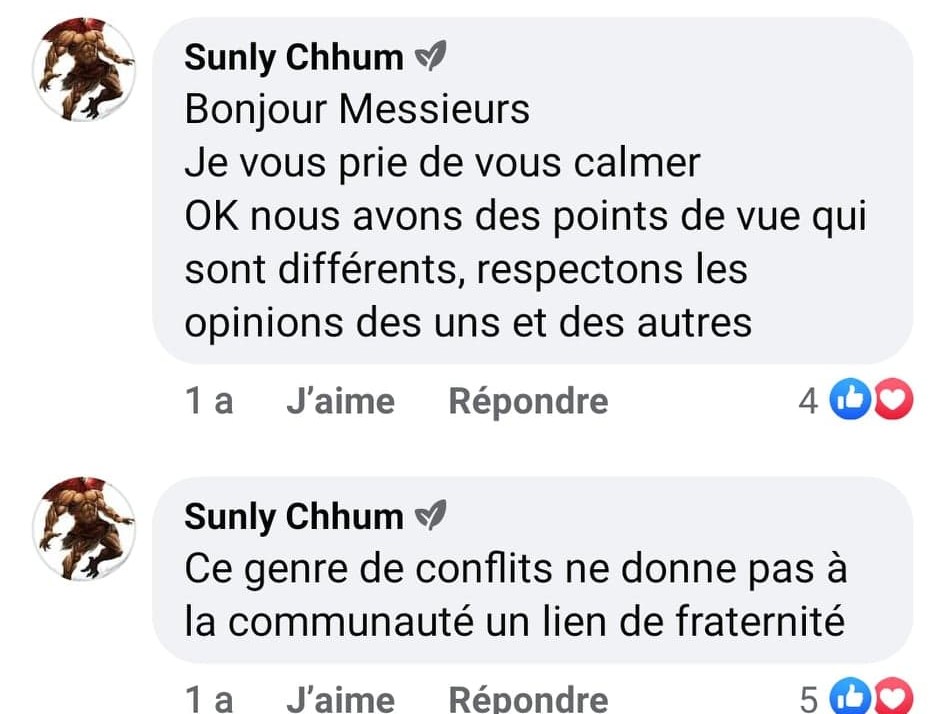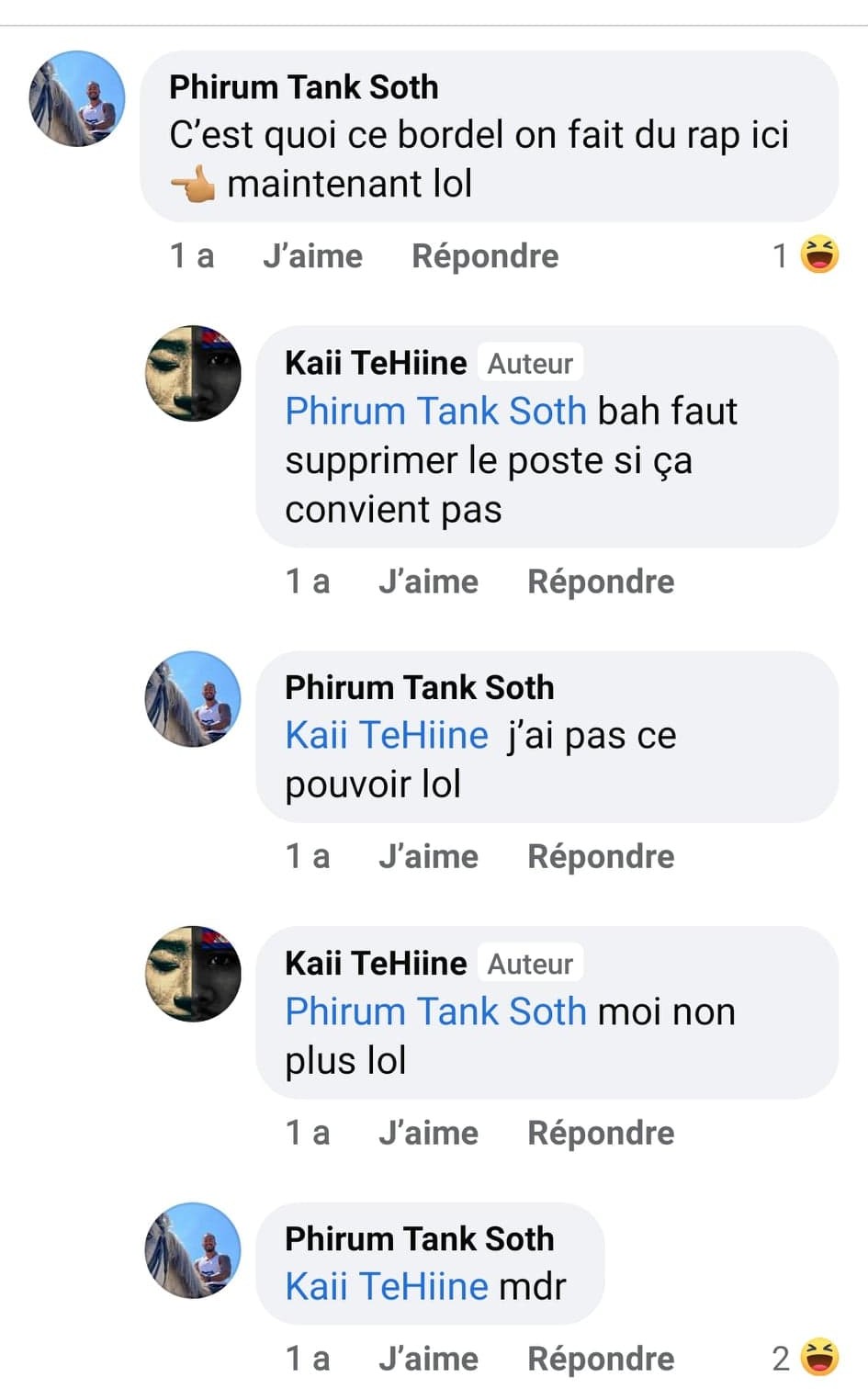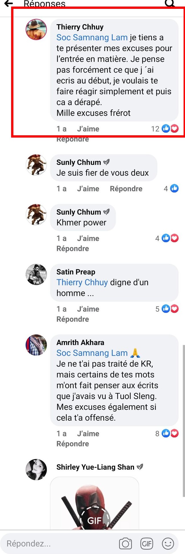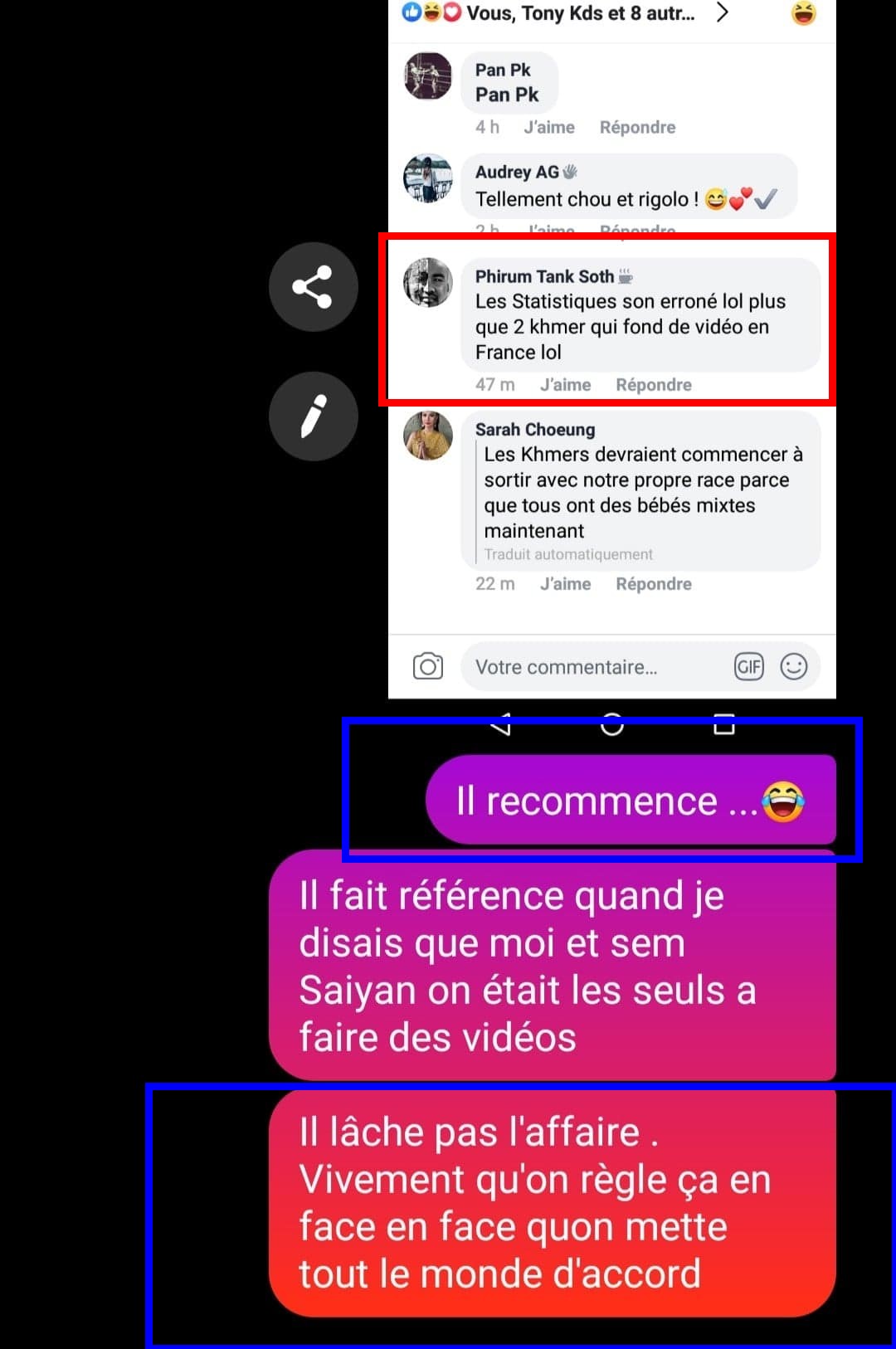C'est à cette période moment là que le Phirum commençait à montrer de plus en plus son visage toujours en cherchant à troller "gentiment" toujours un pic de provocation, avec ces genres de commentaire suivants sur l'éveil Franco Khmer et toujours dans mes propres publications :