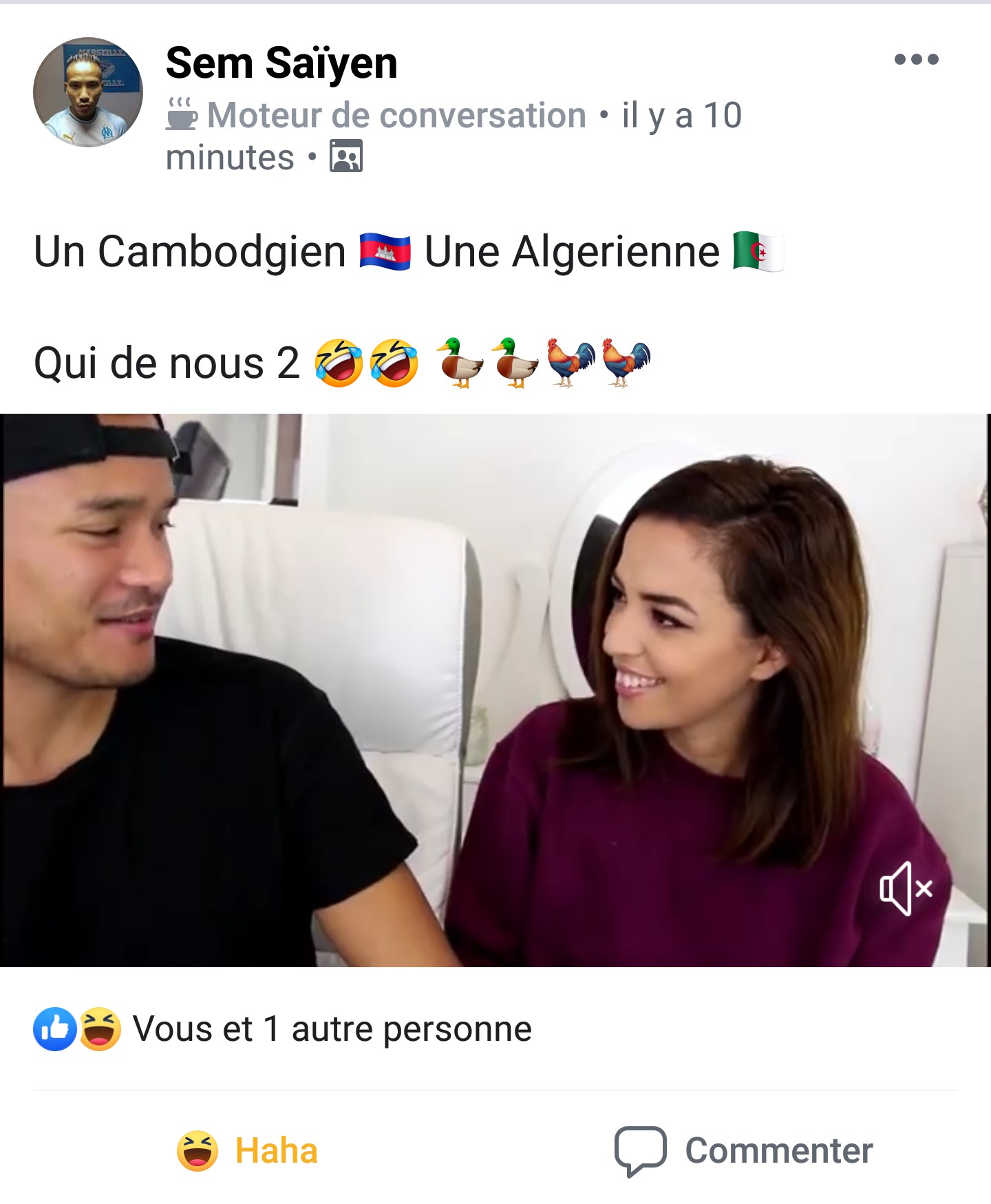 Donc si tu as regardé cette vidéo (https://youtu.be/0awLZULuoB4) , tu sais dans le groupe qu'on traite des sujets sensibles, alors pour ma part j'ai fais pas mal de sujet tabou, comme les clichés asiatiques, les couples entre khmers, la mentalité des khmers de France.
