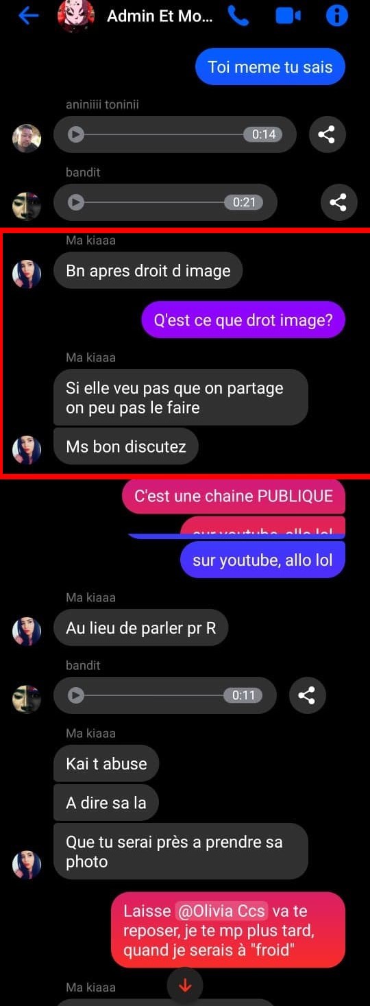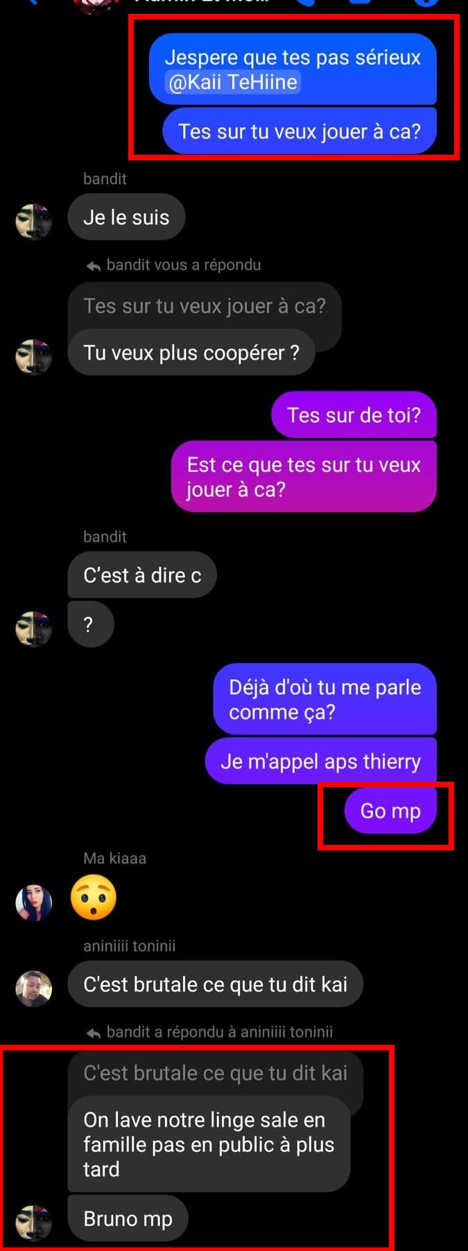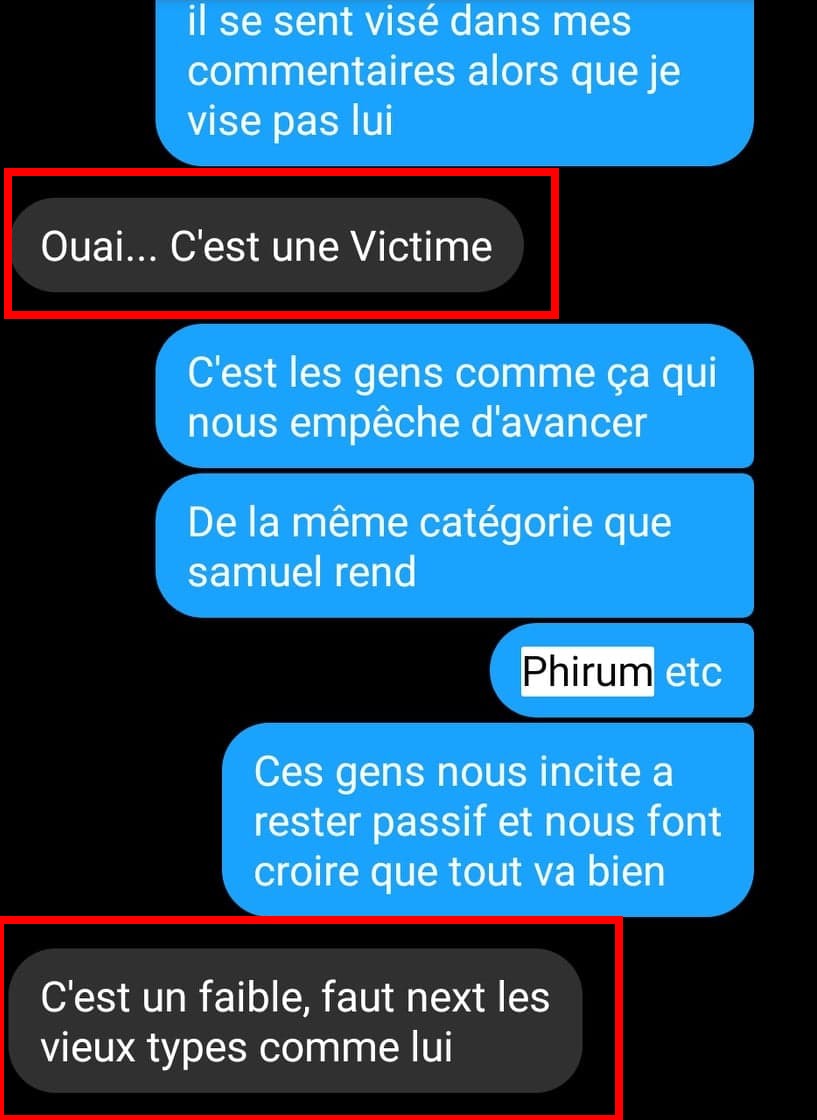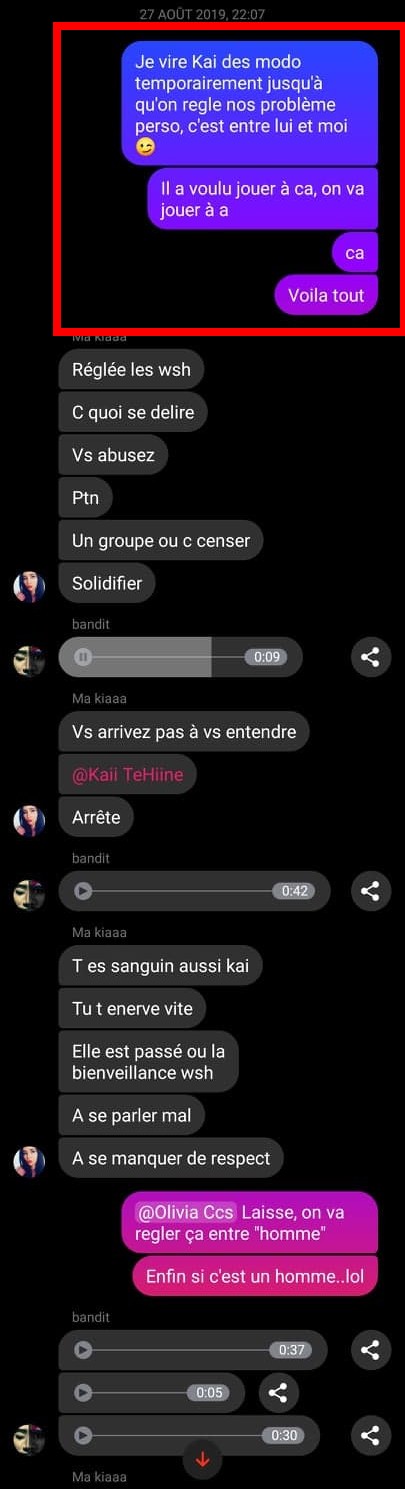 Ce qui est entouré en rouge, montre clairement une sorte de rancune / méprise, ou peu importe comment on appelle ça, mais on voit bien à travers son message (voir ce qui es entouré en rouge)