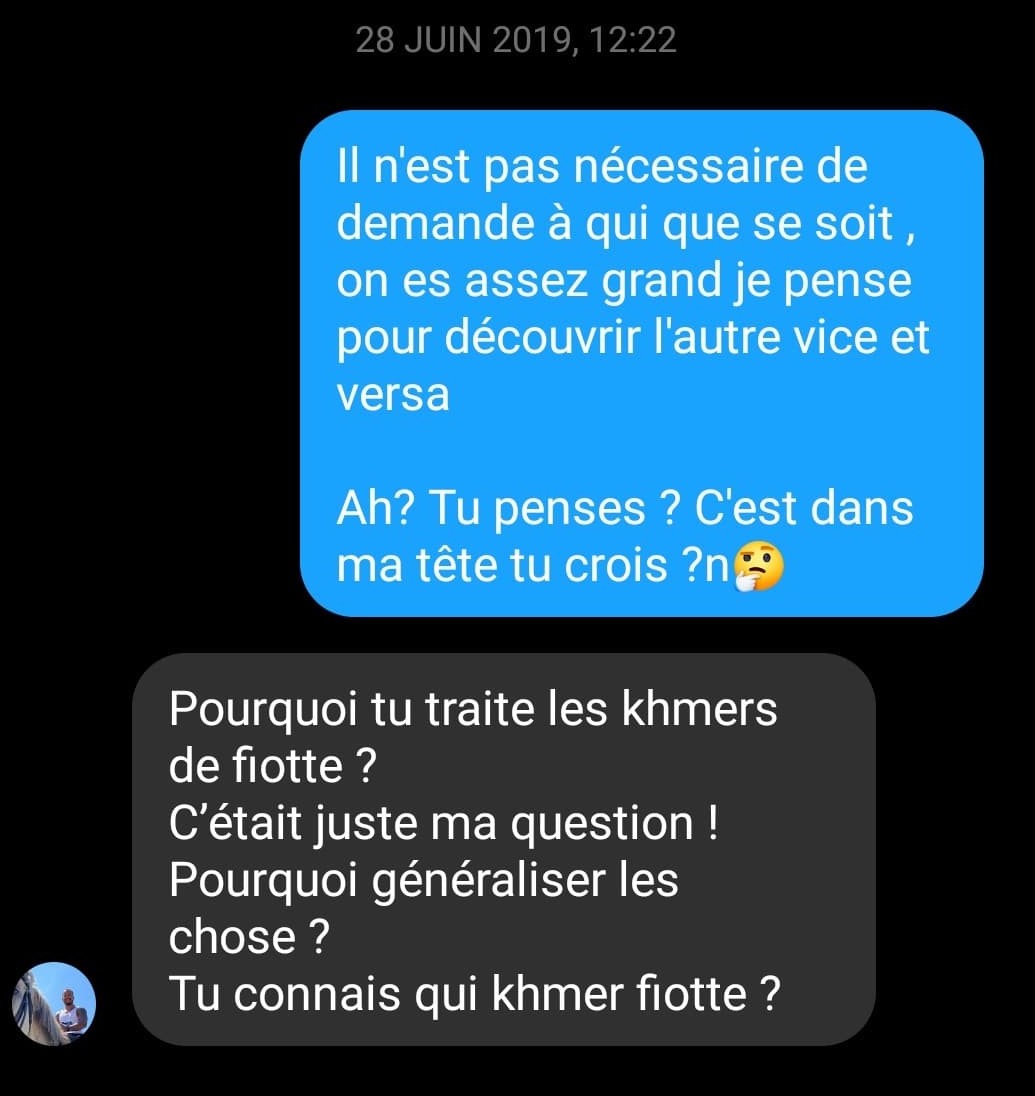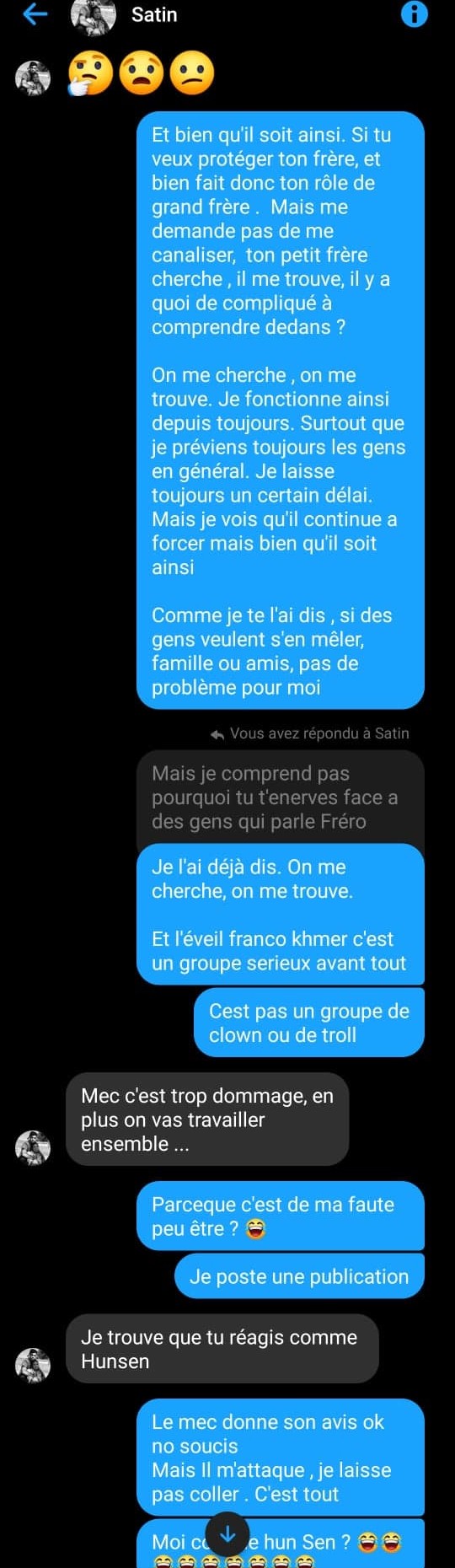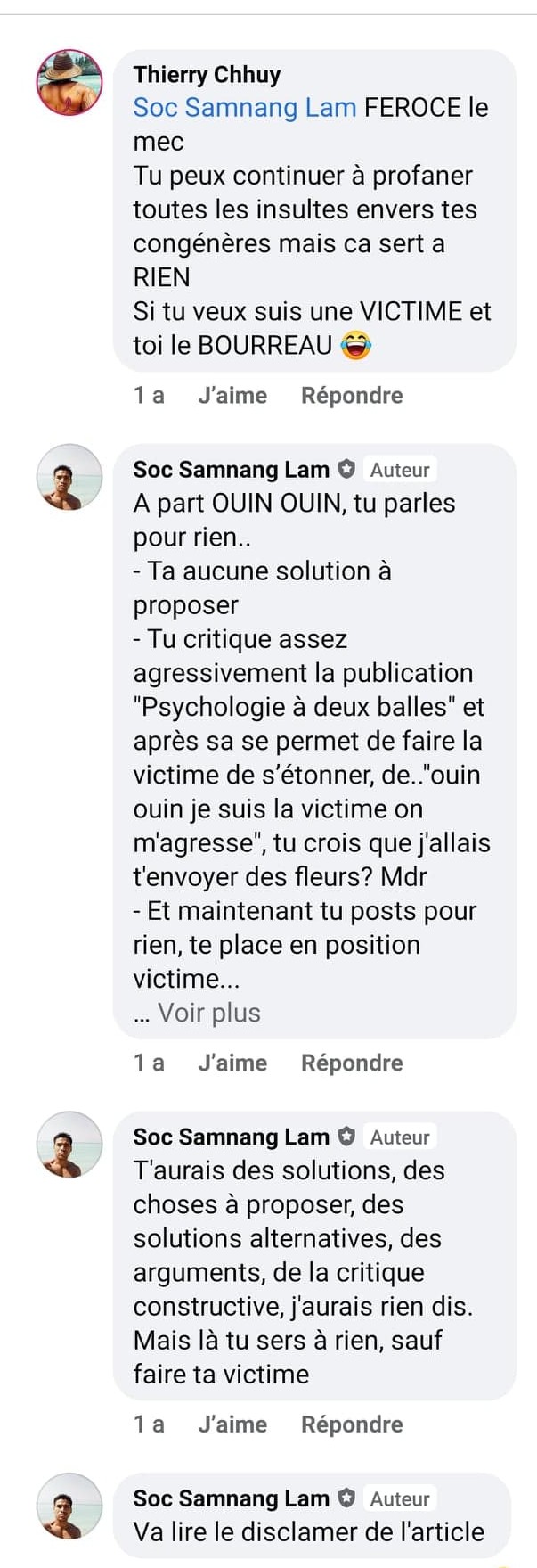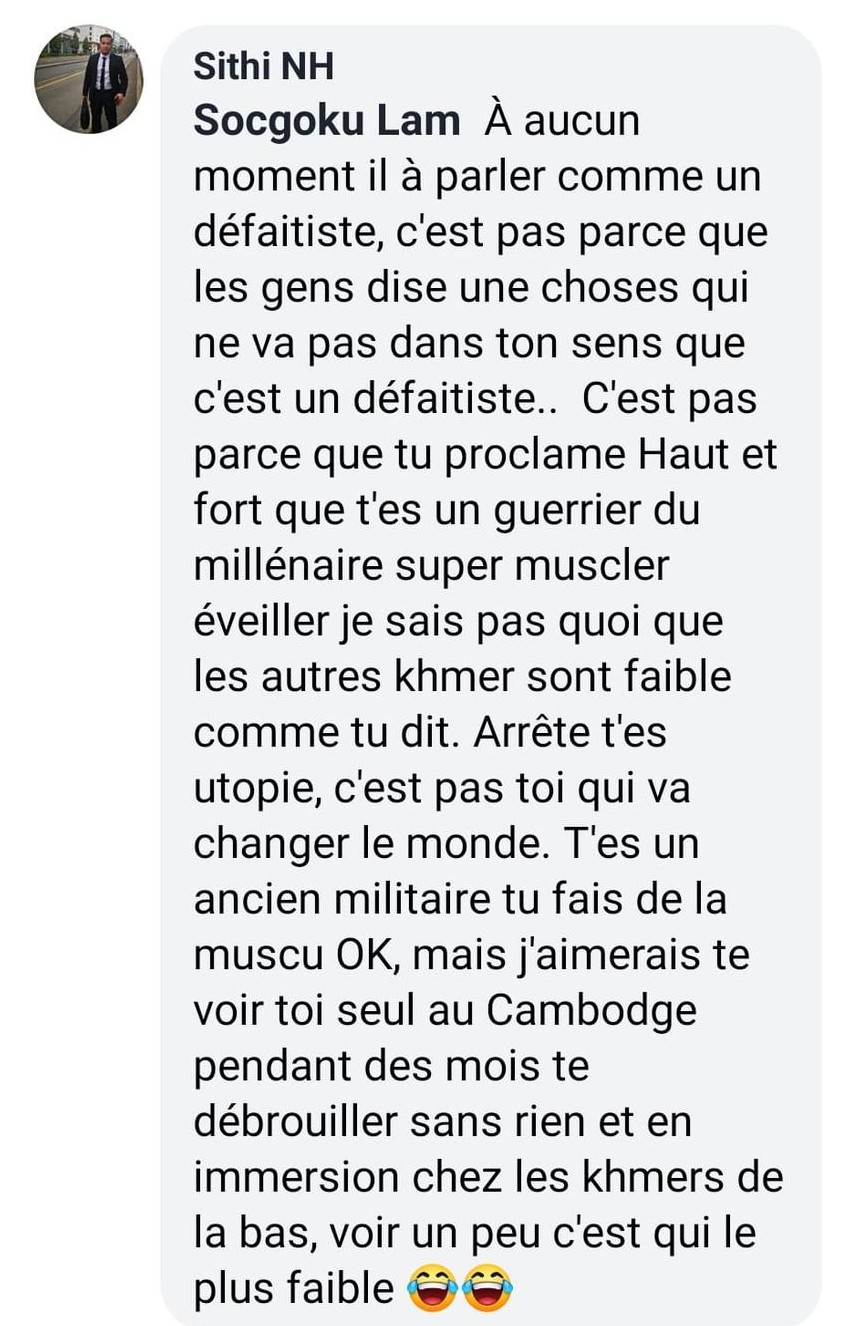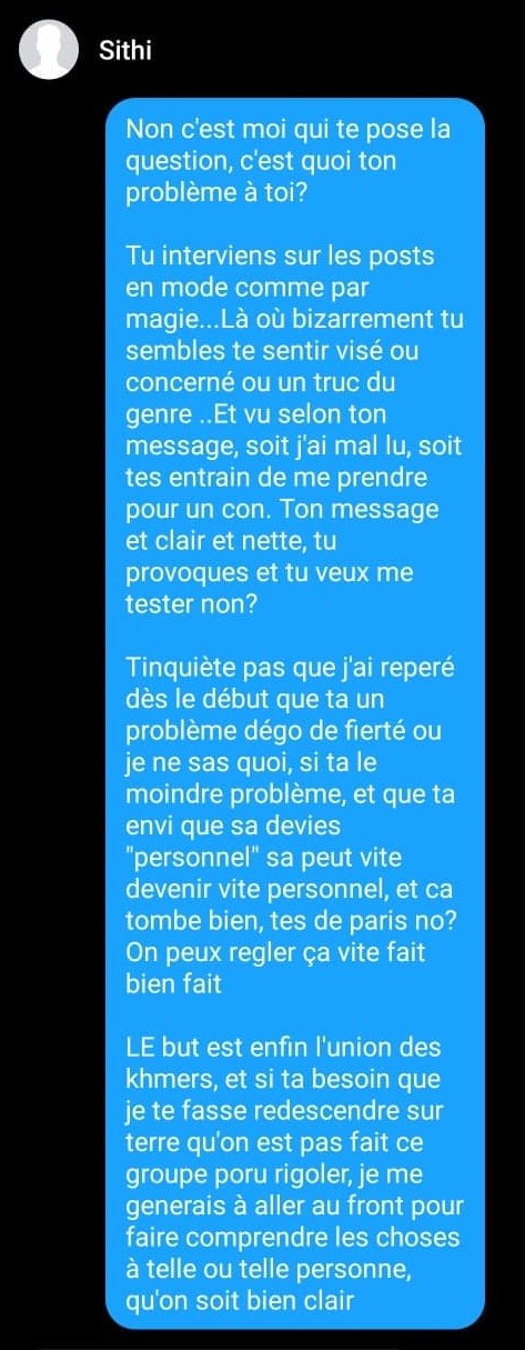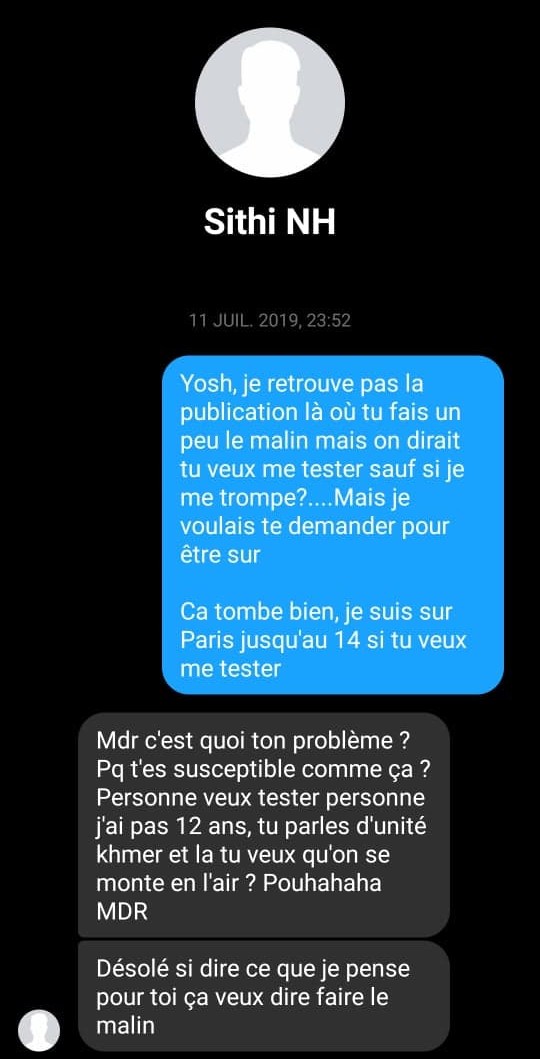 Puis comme par "hasard" ta son pote Sithi Nh qui intervient sorti de null part qui me tacle bien ouvertement. Mais pour son cas on reviendra plus tard.