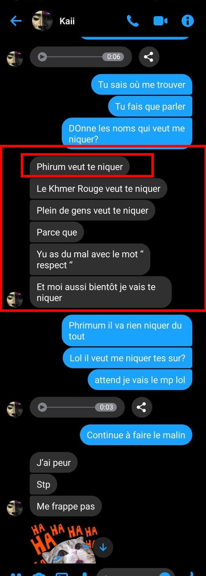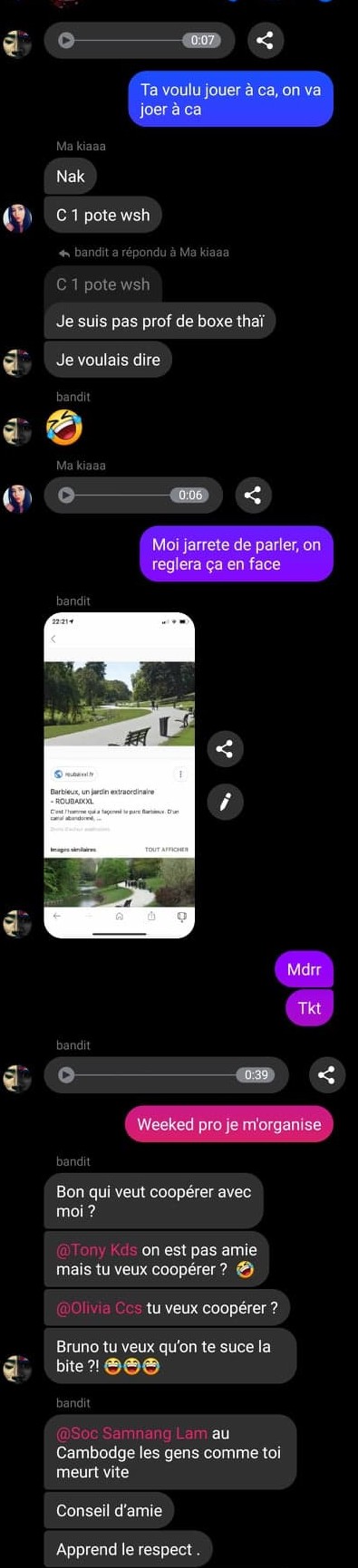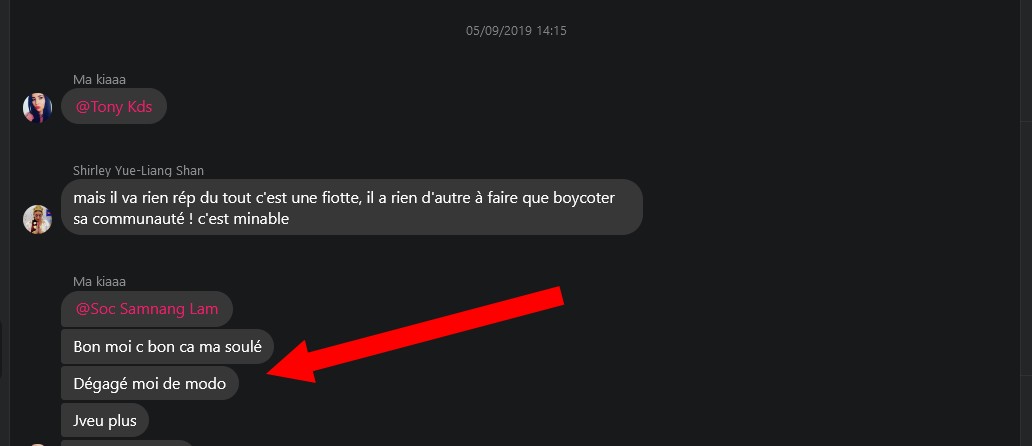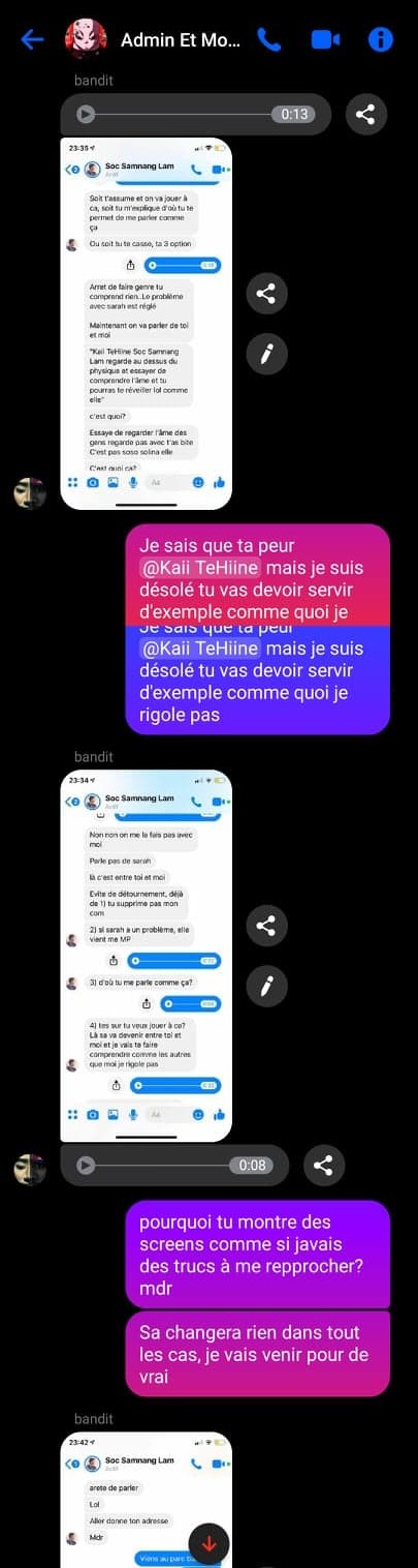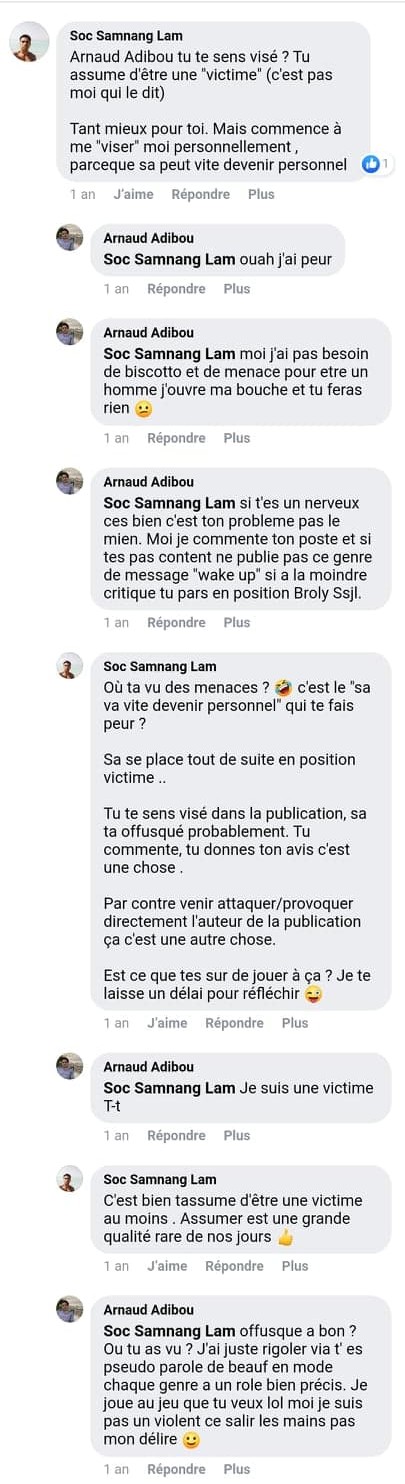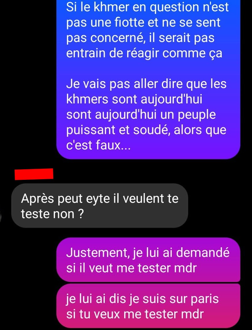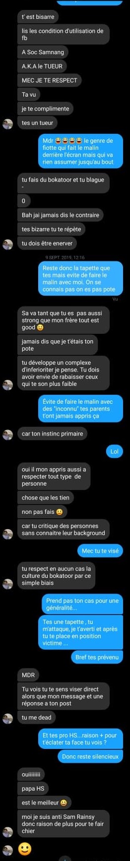 Puis comme par "hasard" ta son pote Sithi Nh qui intervient sorti de null part qui me tacle bien ouvertement. Mais pour son cas on reviendra plus tard.