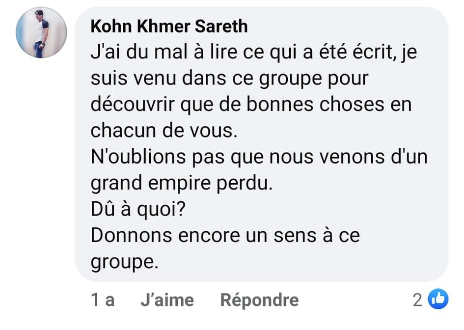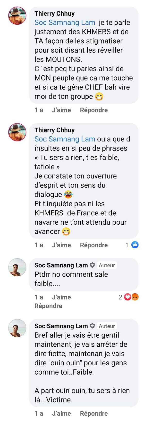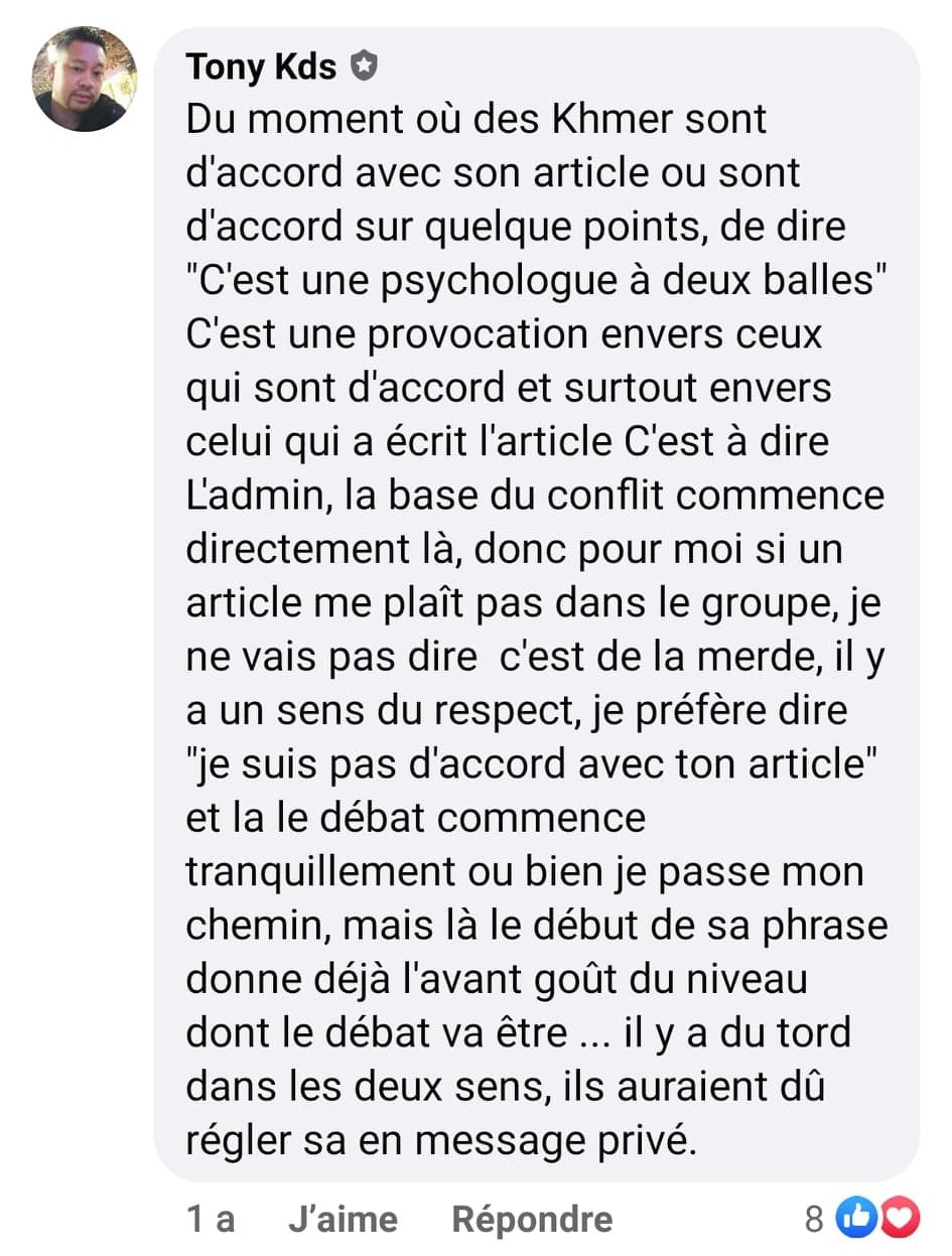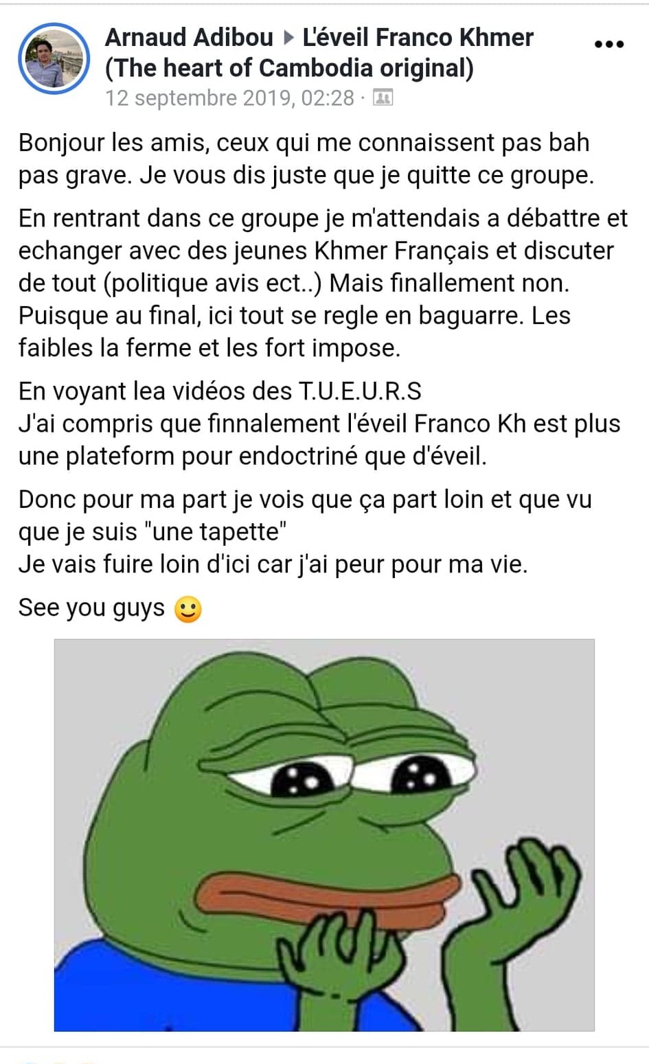 Là où c'est parti en couille, c'est dans le groupe EVEIL FRANCO KHMER (donc 1ans après qu'il m'ait ajouté dans ses amis facebook).