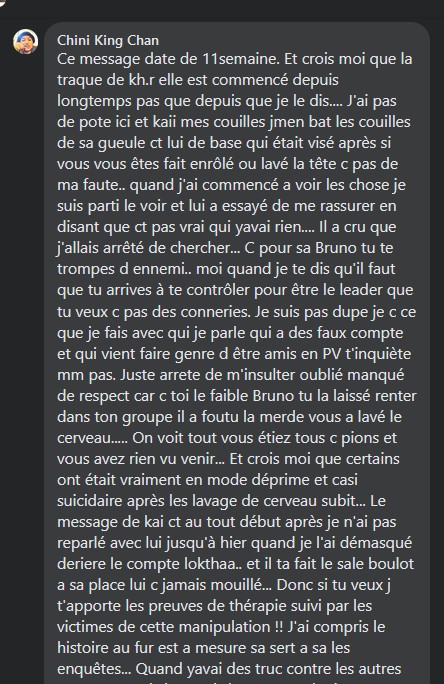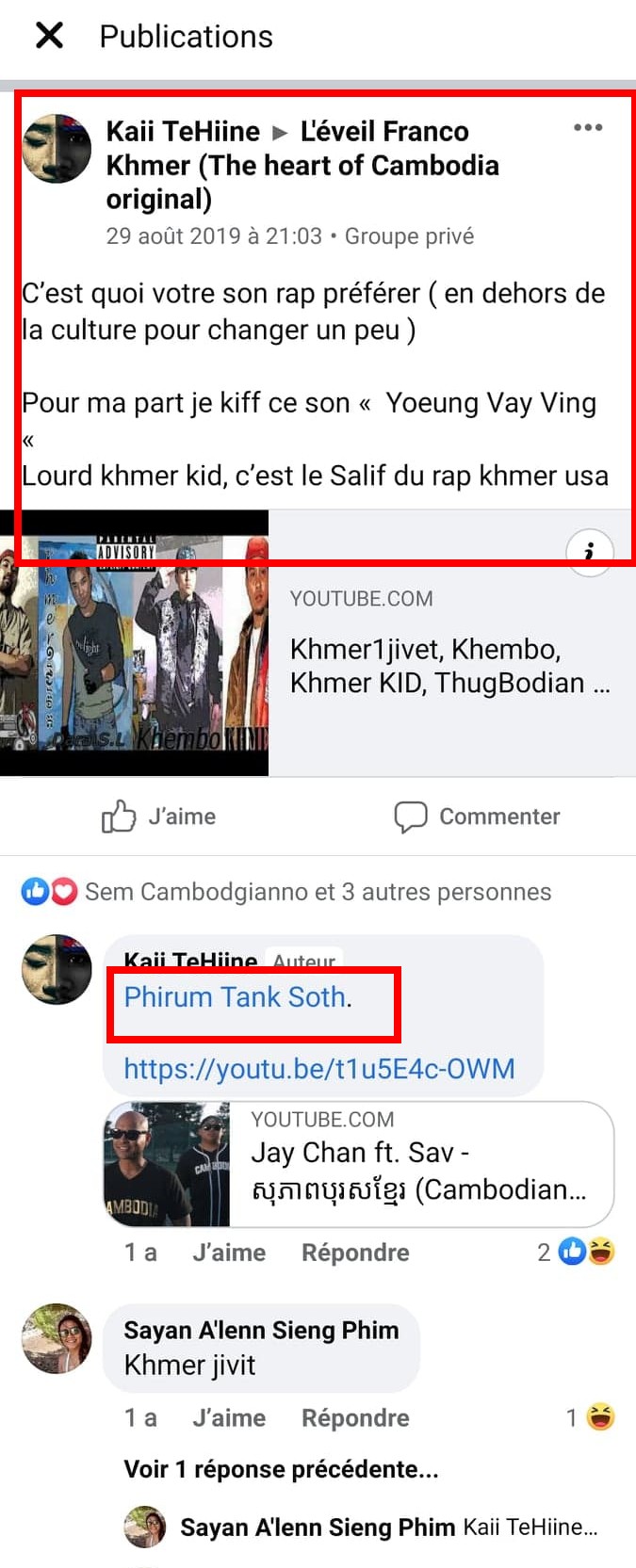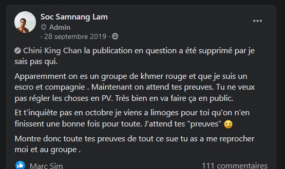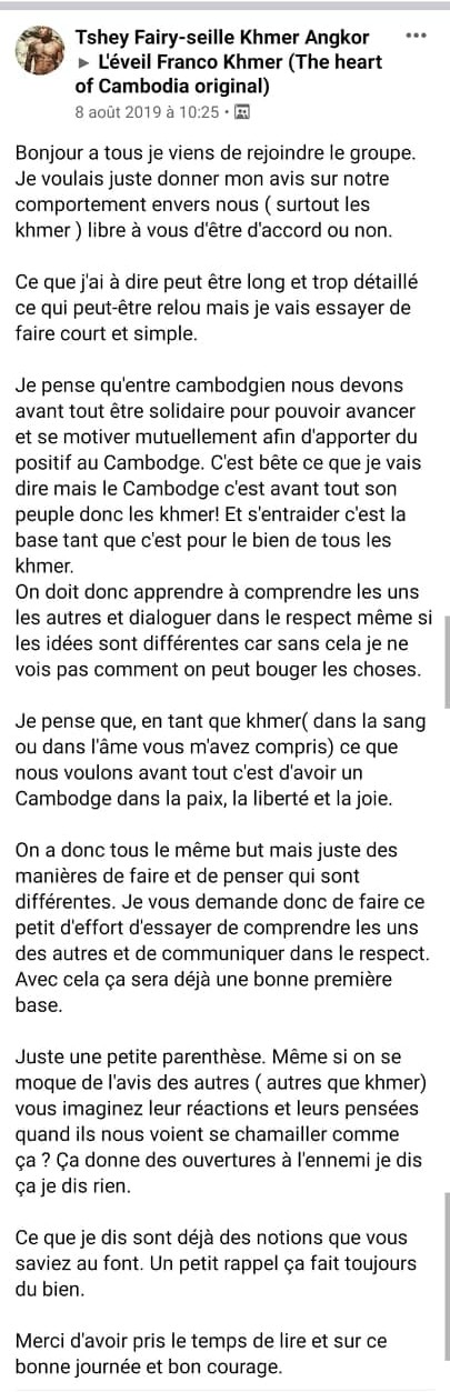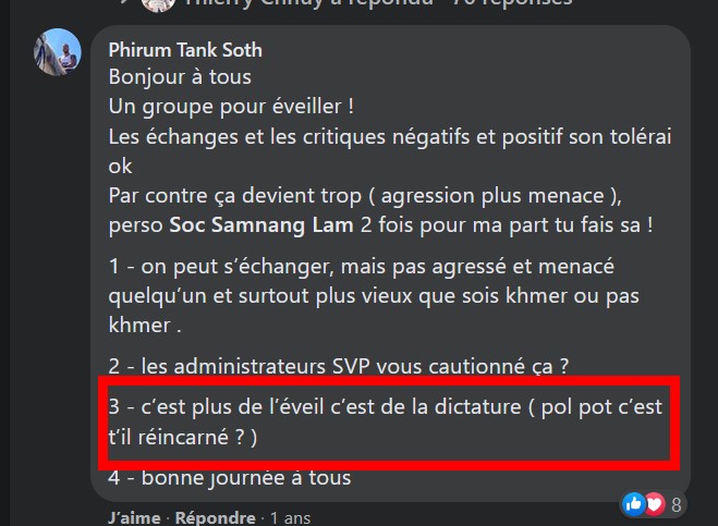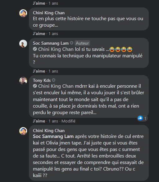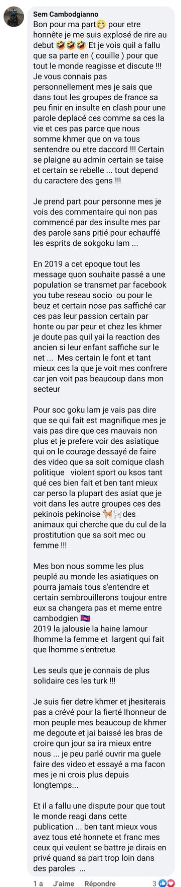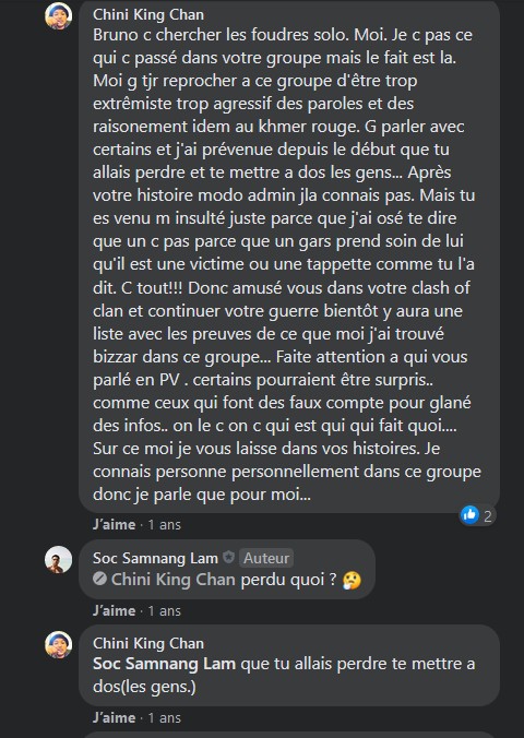 Là où c'est parti en couille, c'est dans le groupe EVEIL FRANCO KHMER (donc 1ans après qu'il m'ait ajouté dans ses amis facebook).
