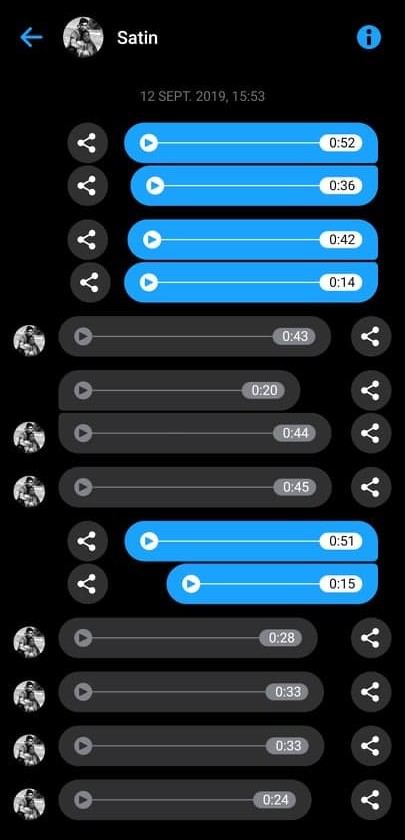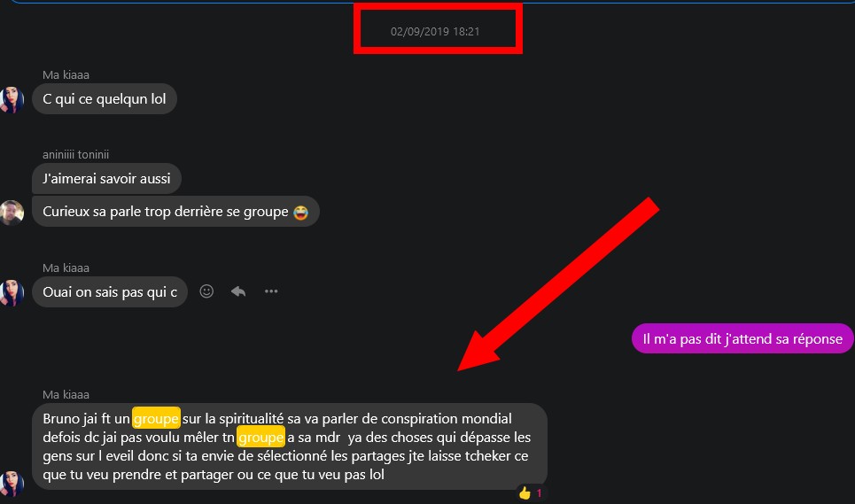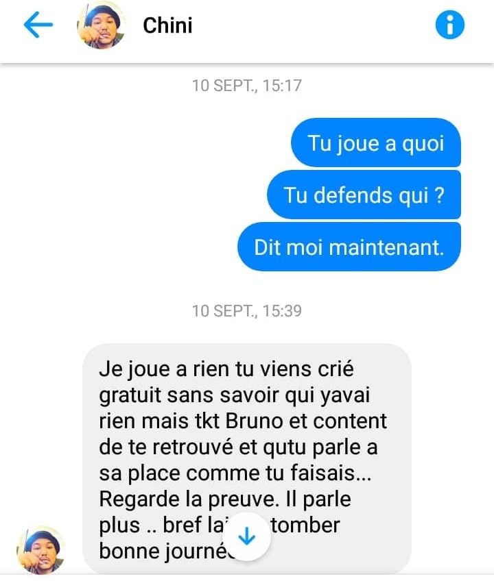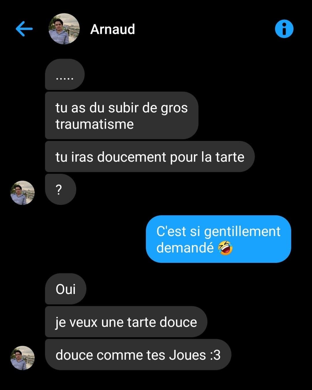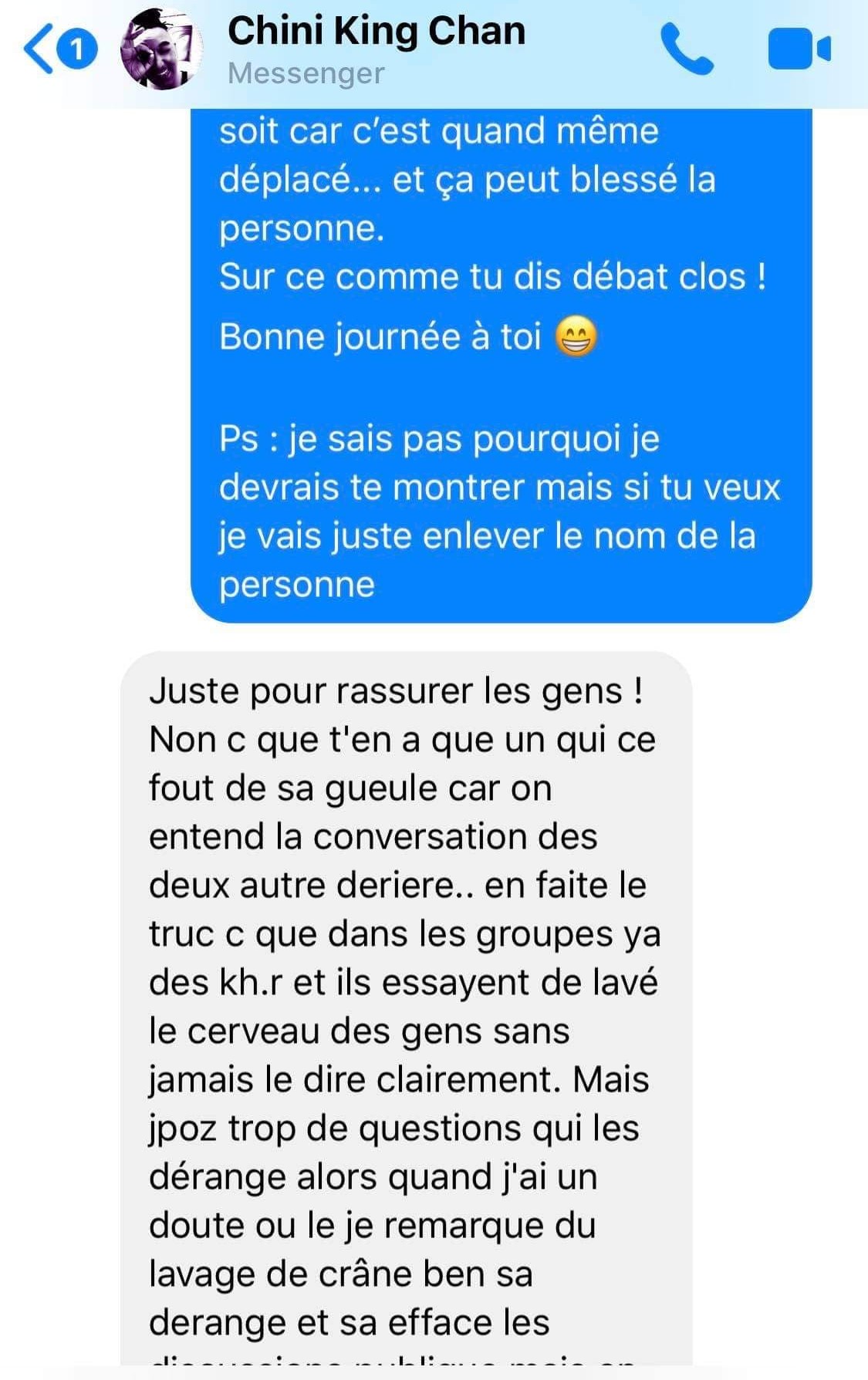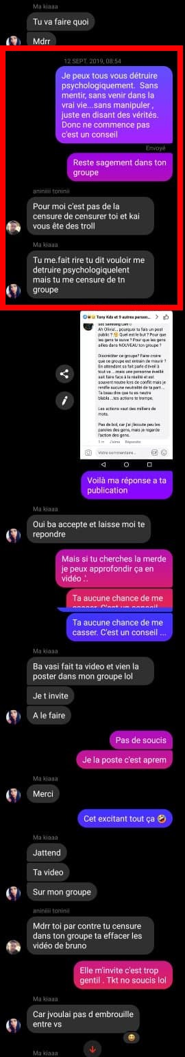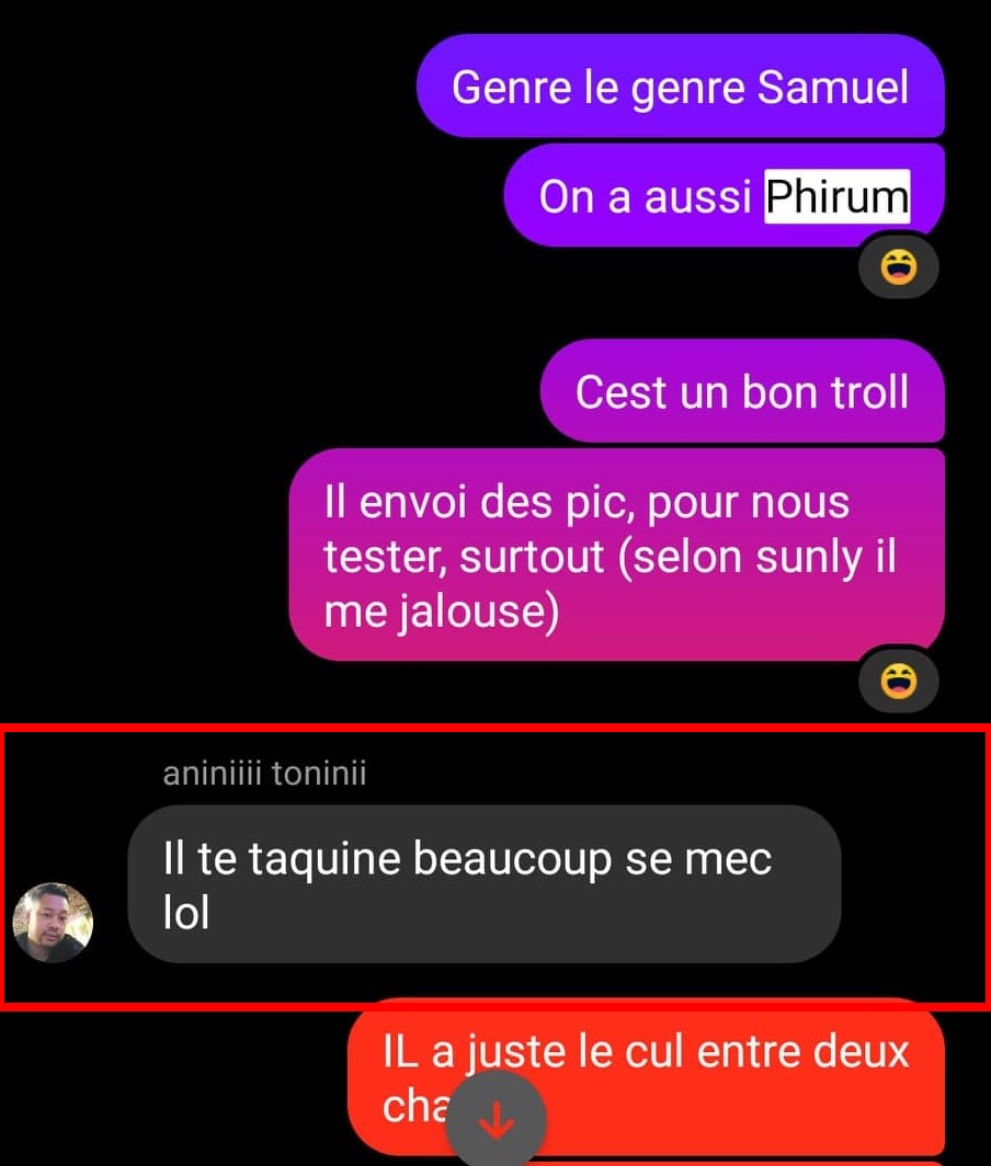 Voici quelques aperçu de message (sur messenger, je suis en bleu, en noir c'est Kai)