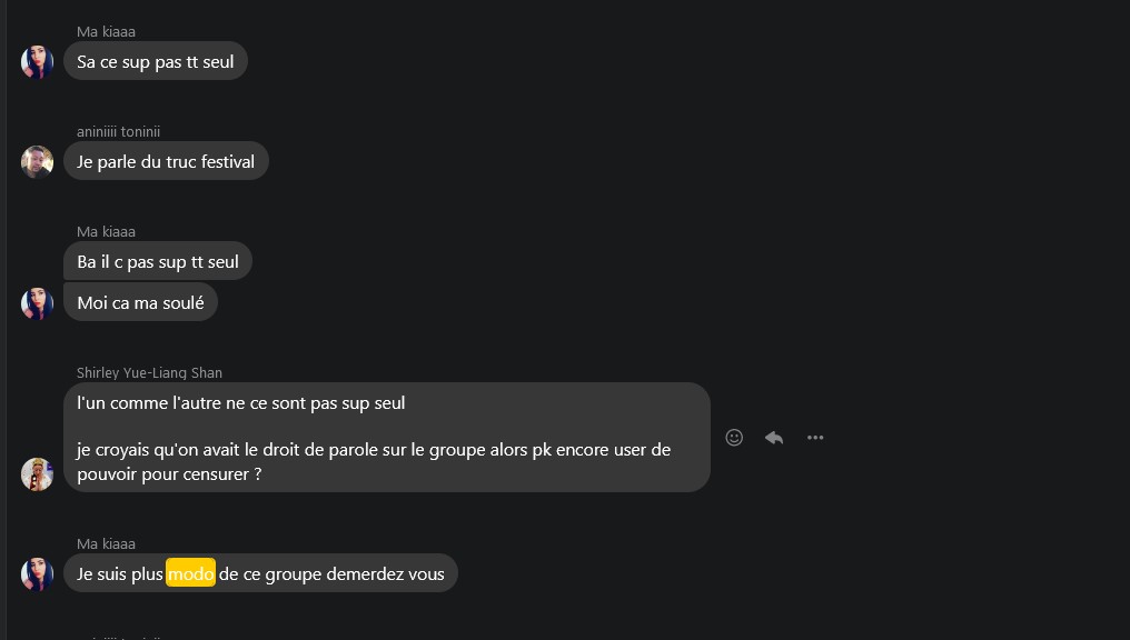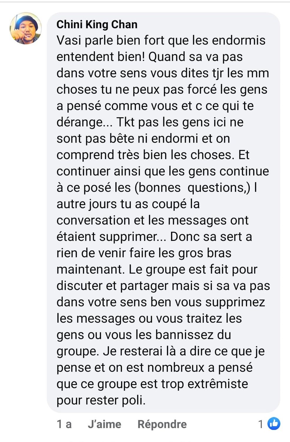 Voici le long message dans lequel où j'ai mentionné le terme fiotte en répondant à Sithi NH