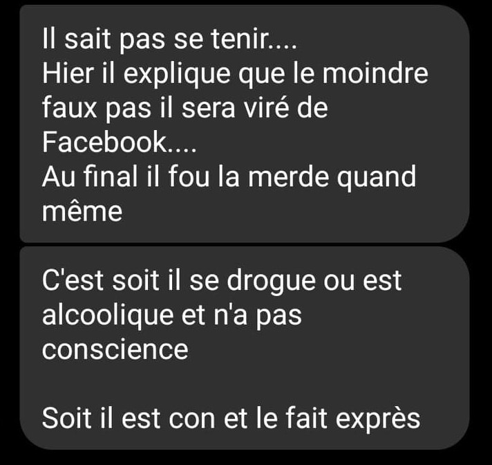 Mais au fil des mois et années, je constais qu'il m'envoyait des pics (provocations) sur la plupart de mes publications sur mon mur et dans les groupes.