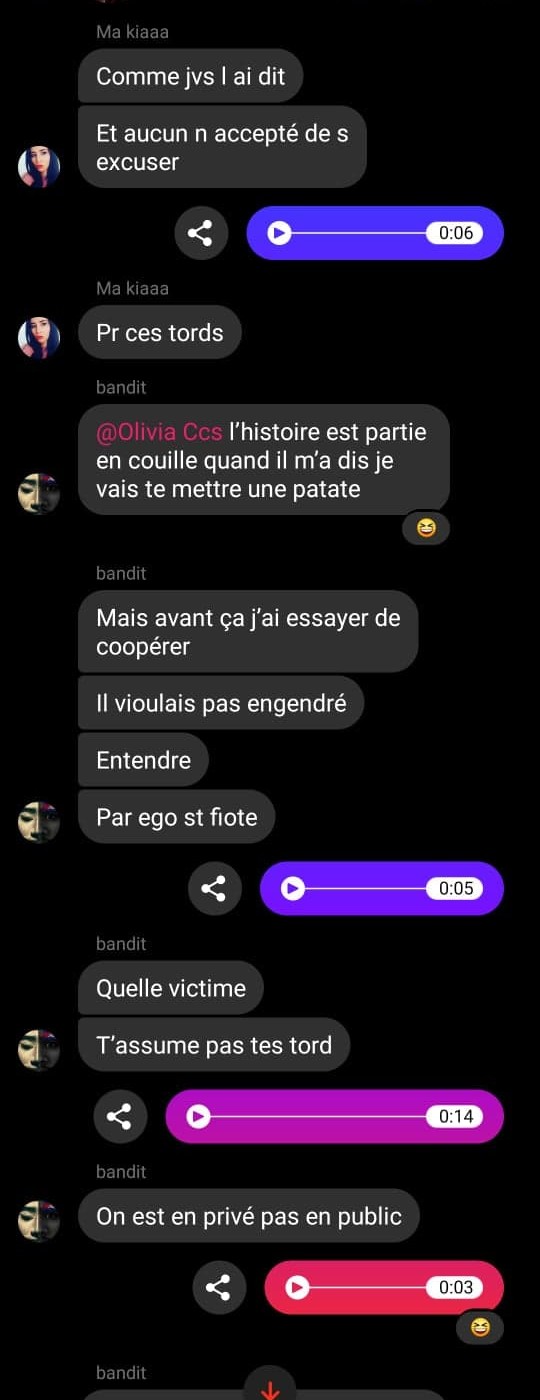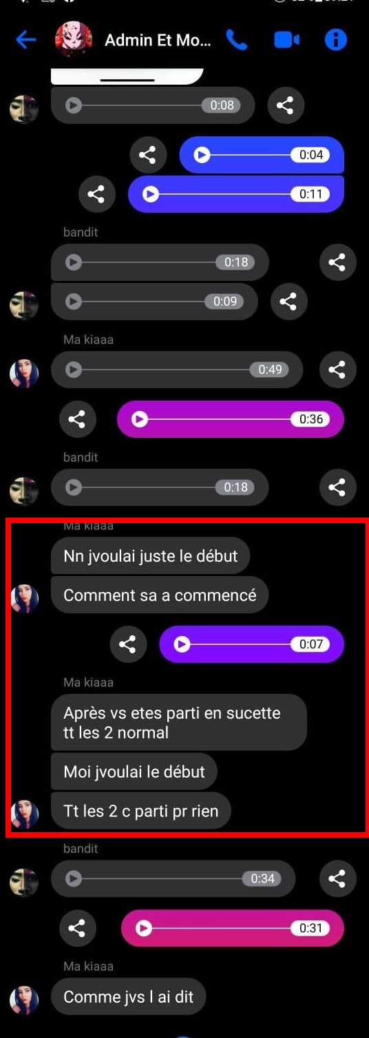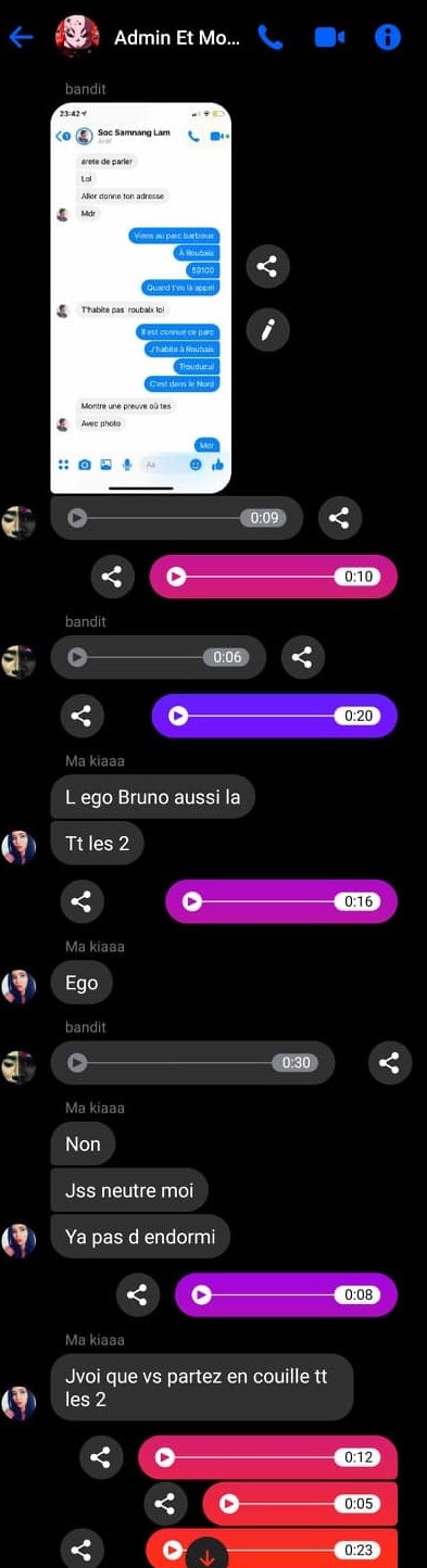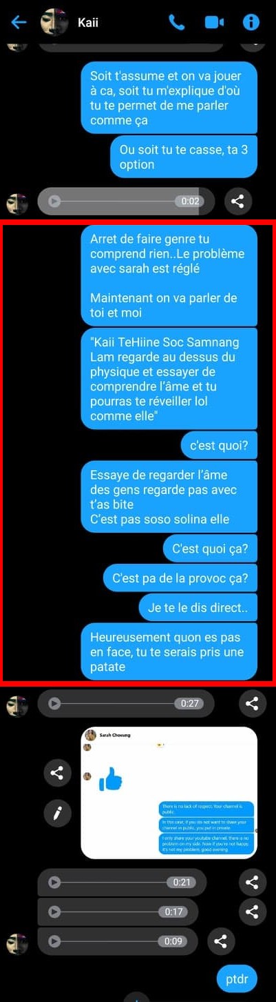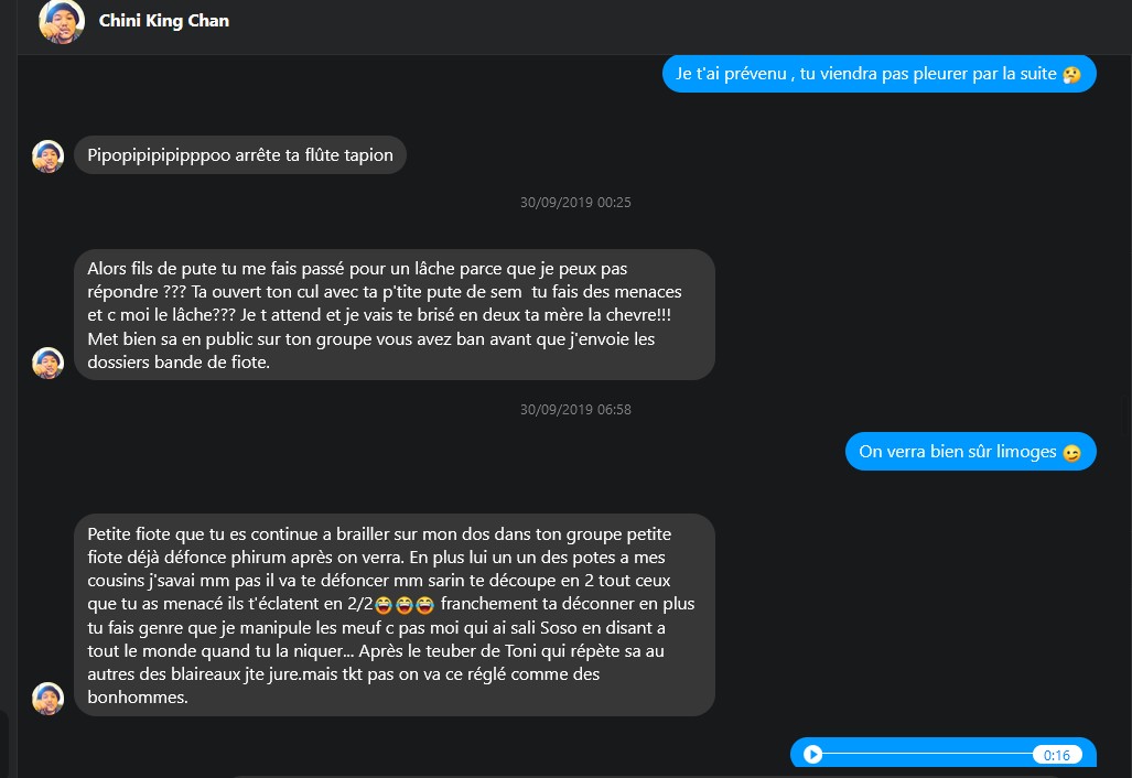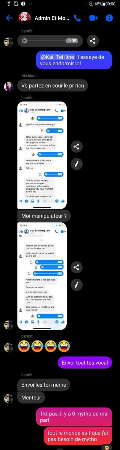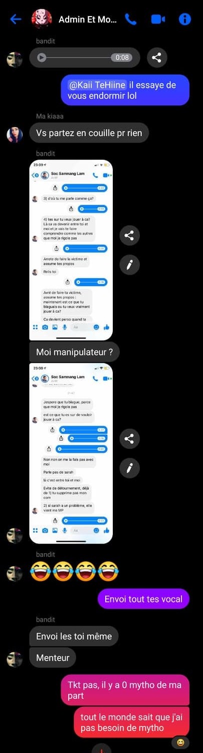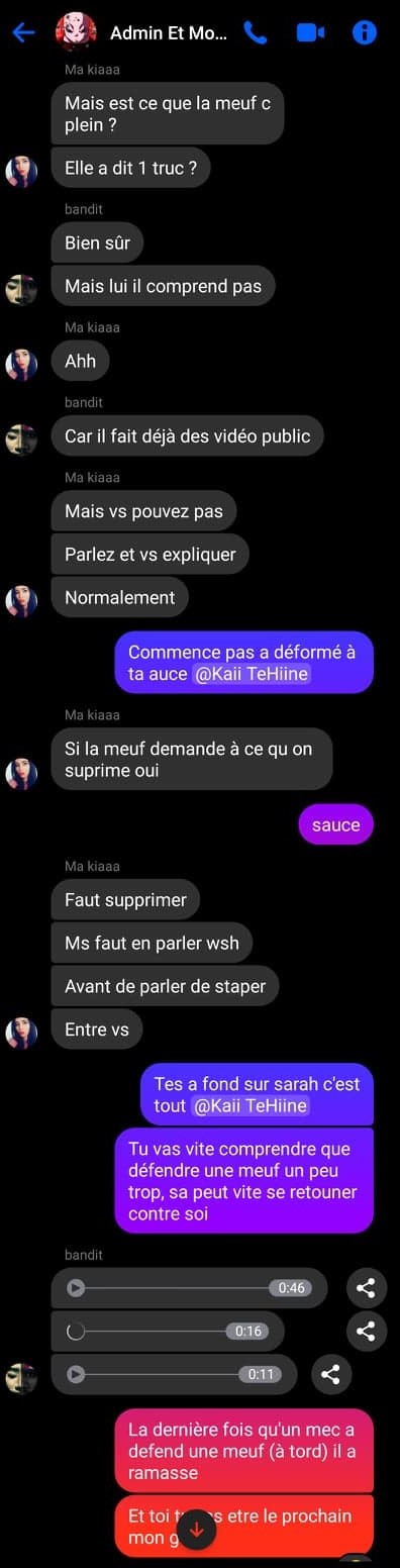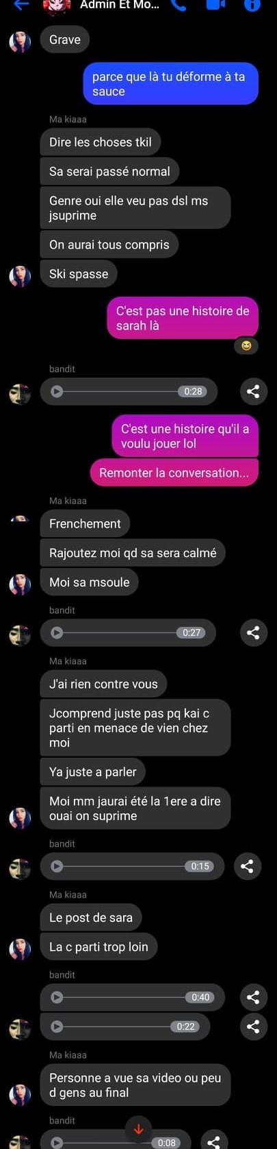 C'est d'ailleurs lui qui ma transmis DEUX audios dans lequel Sarin se fou de ma gueule sur mon dos.