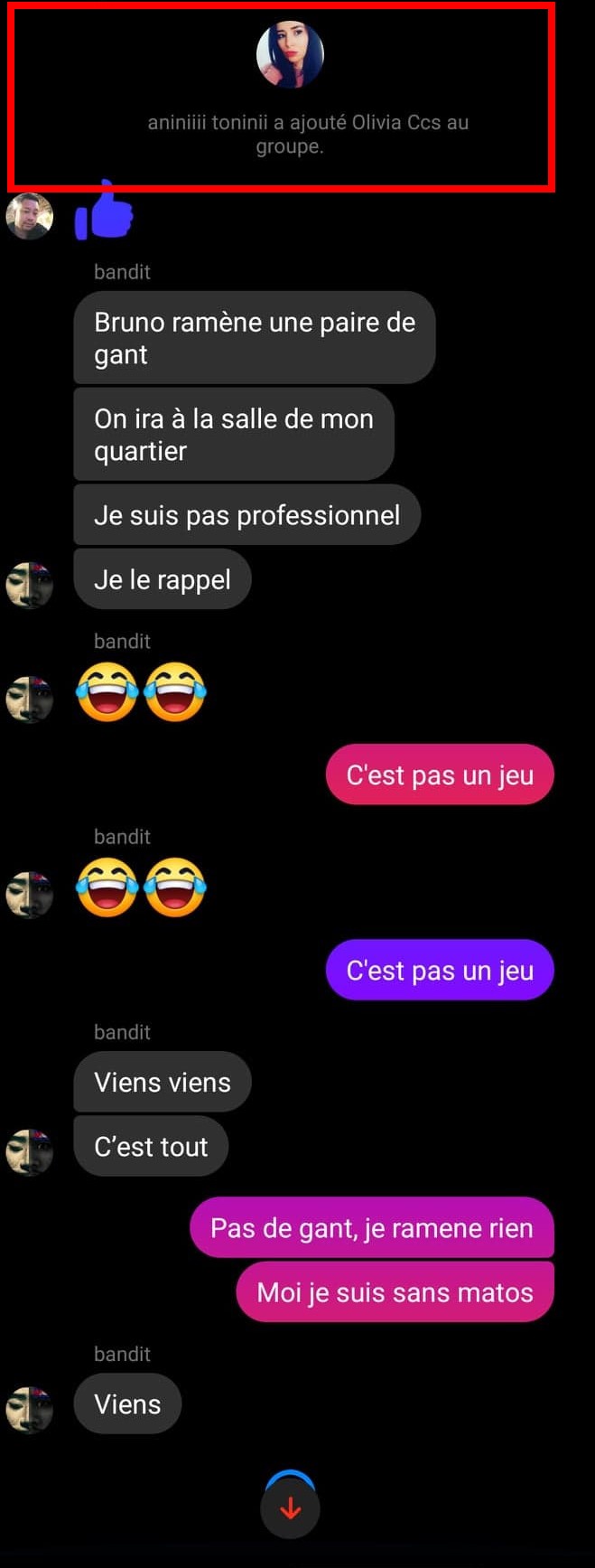 La preuve ici quand il m'avait contacté par message privé lorsque j'avais montré ma zone sportive en story facebook :