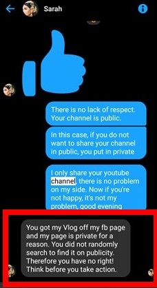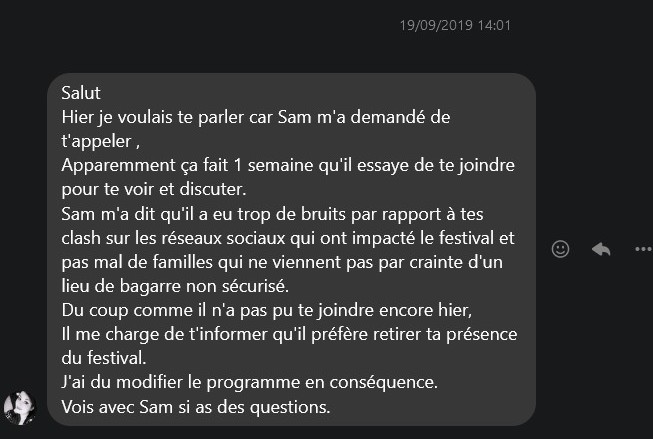Et bien sur, plus tard je vais lui envoyer un message pour lui demander c'est quoi son problème (ce que nous allons voir plus bas)