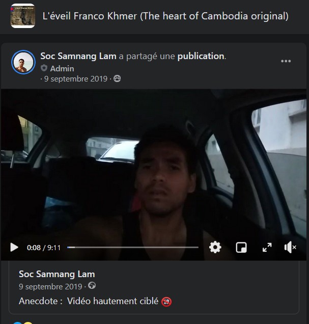 Ou encore ceci dans le groupe EVEIL FRANCO KHMER, une publication où je montrais une vidéo dans laquelle j'étais entrain de faire une zone sportive :
