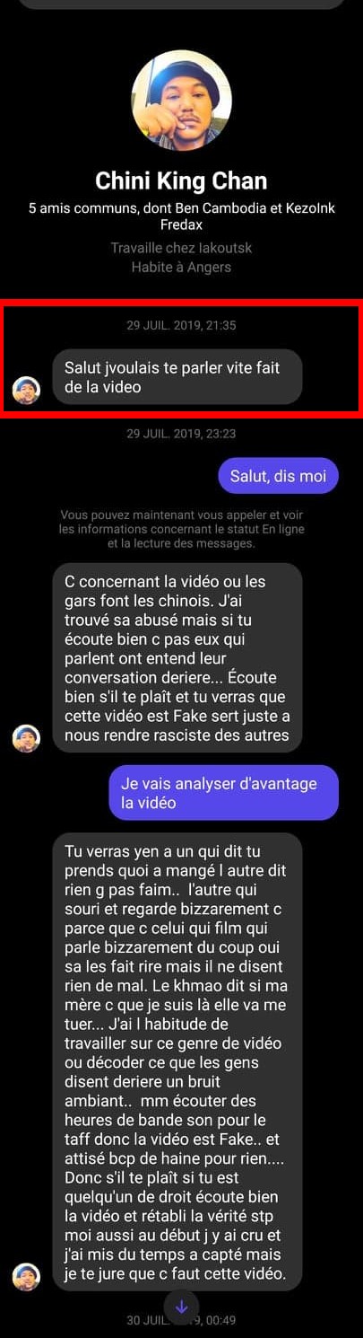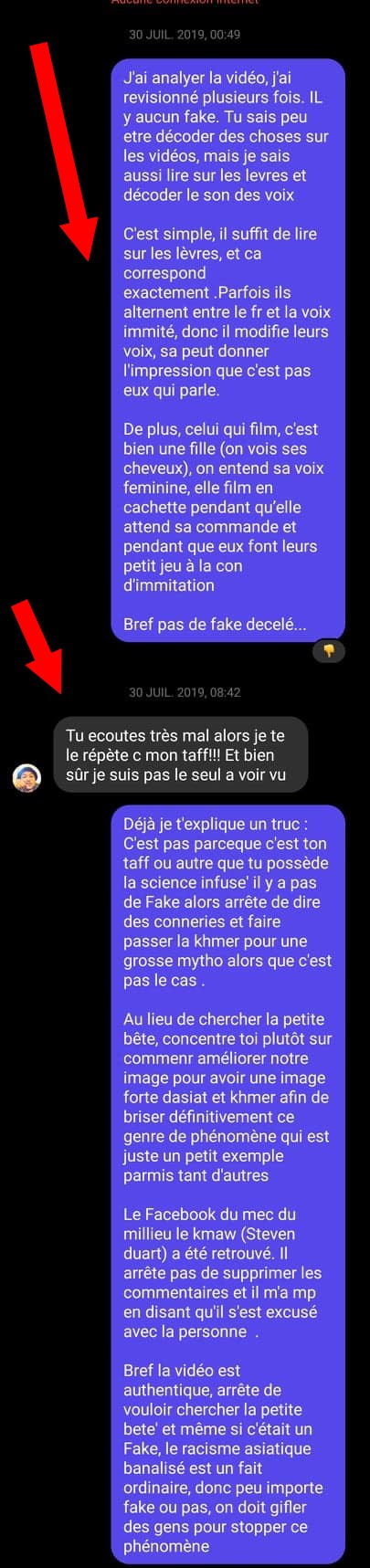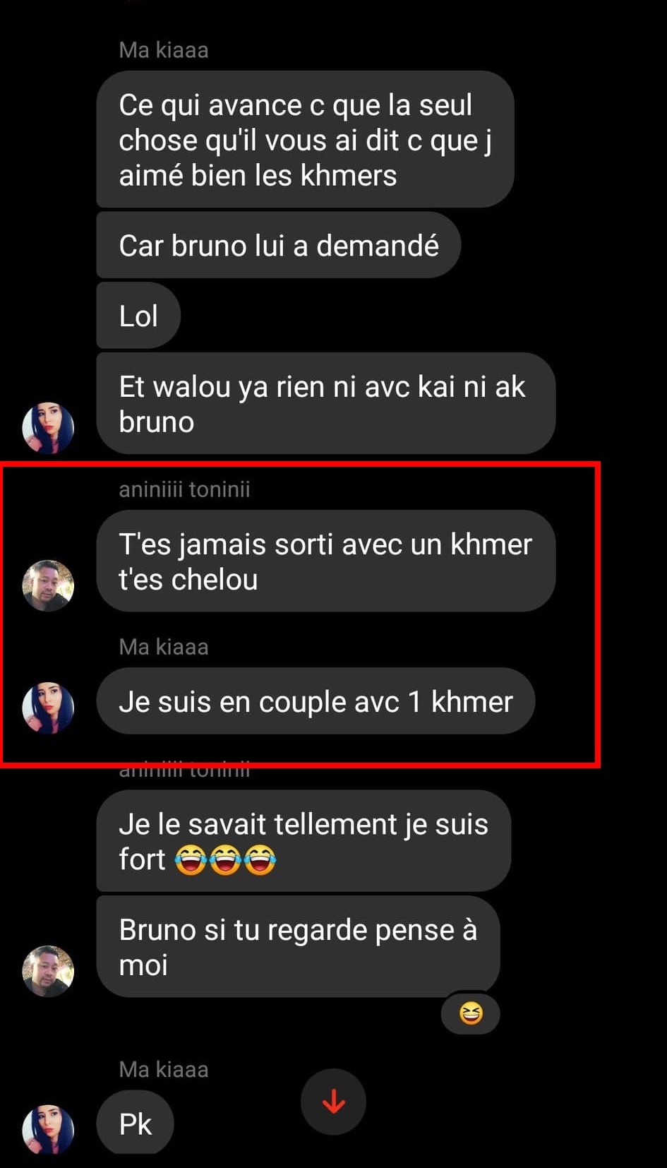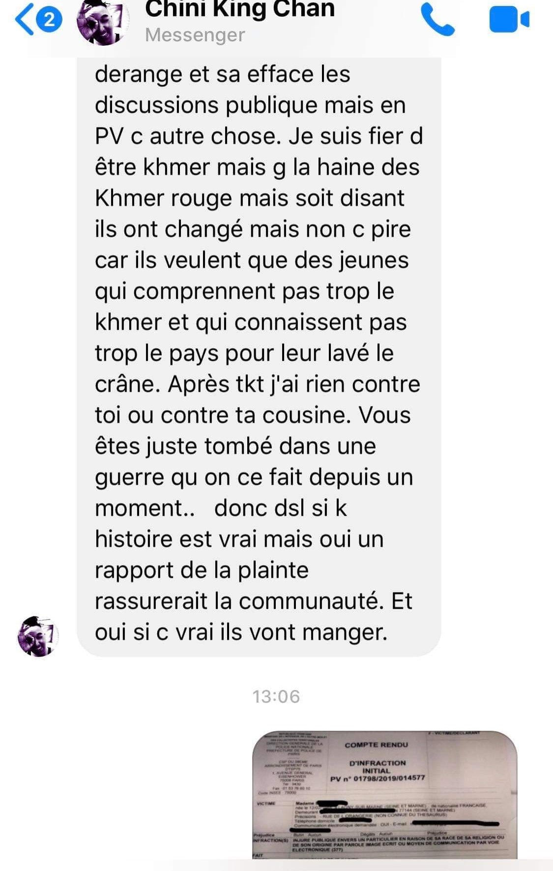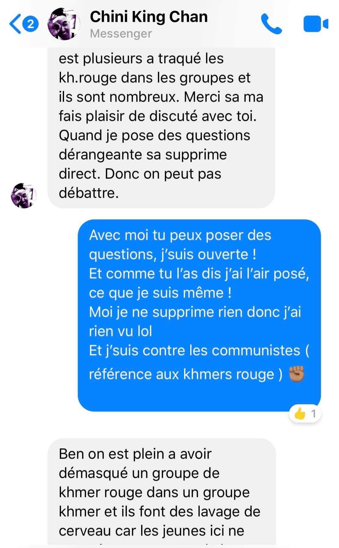 Ces fameuses preuves c'était sa conversation avec Solina là où elle sous entendait que j'étais un khmer rouge.