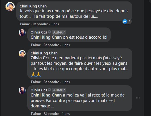 A l'heure aujourd'hui fin 2020 presque aucun ne reconnaissent leurs tords (pour ne pas dire tous), ta par exemple olivia et kai qui nient avoir collaborer avec Chini.