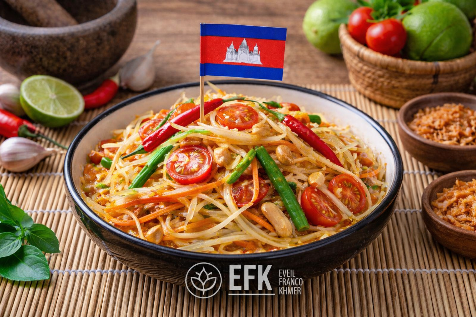 Au Cambodge, certains plats racontent la vie quotidienne mieux que de longs discours. Le Bok Lahong, salade de papaye verte pilée au mortier, fait partie de ces recettes profondément ancrées dans la culture khmère. Simple en apparence, il incarne pourtant un savoir-faire ancien et une manière bien particulière d’équilibrer les saveurs.
