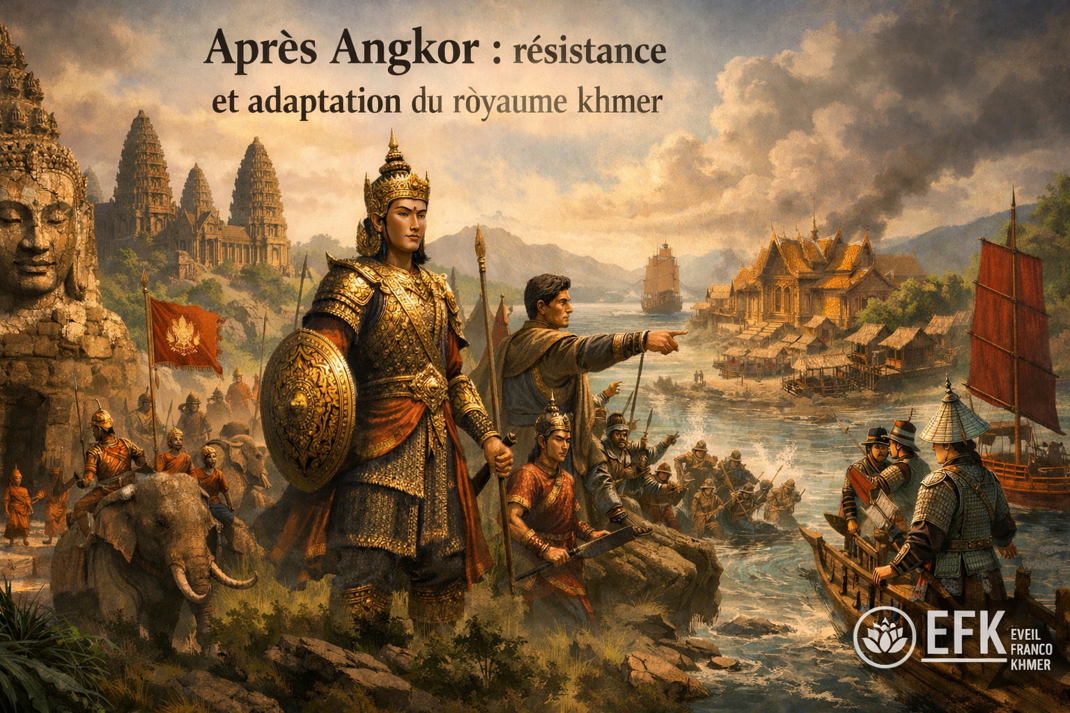 Après la grandeur de l’Empire d’Angkor, le Cambodge entre, à partir du XVe siècle, dans une période souvent décrite comme fragile. Pourtant, derrière les pertes territoriales et les pressions extérieures, cette époque révèle surtout la capacité du peuple khmer à survivre, s’adapter et préserver son identité.