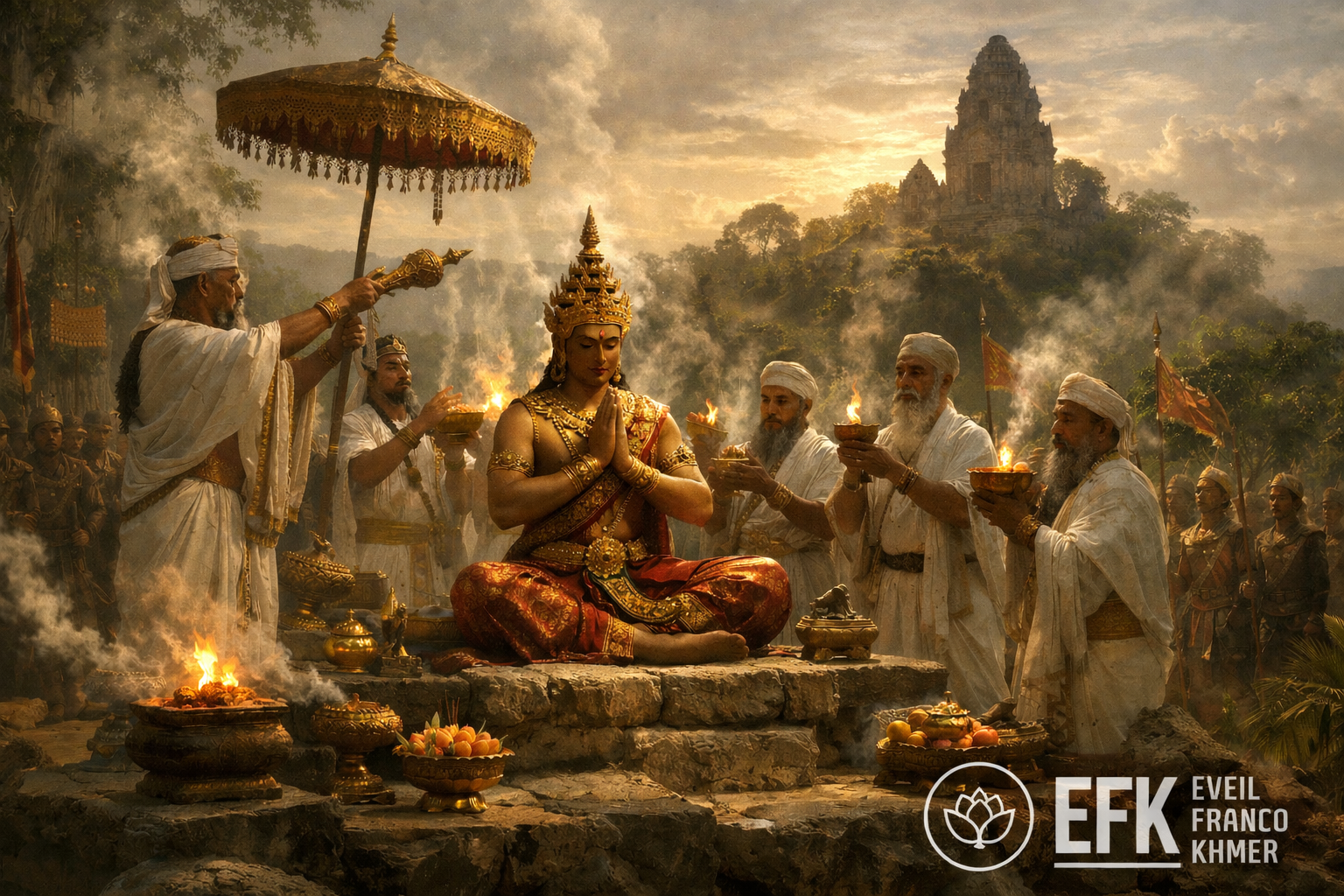 En l’an 802, sur le mont Kulen, un événement fondateur marque profondément l’histoire du Cambodge et de la civilisation khmère. Le roi Jayavarman II y accomplit un rituel solennel au cours duquel il se proclame chakravartin, souverain universel, et « roi-dieu » (devaraja). Cet acte symbolique est aujourd’hui considéré comme le point de départ officiel de l’Empire d’Angkor.