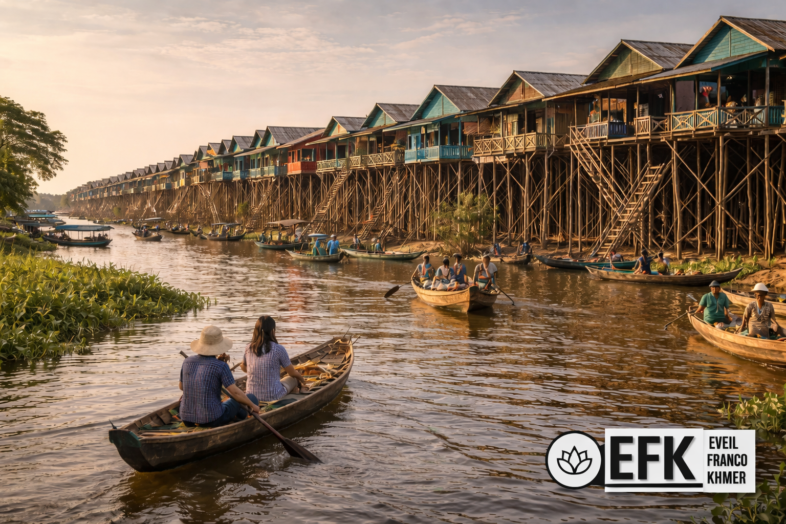 Situé sur la rive nord du lac Tonlé Sap, à environ cinquante kilomètres de Siem Reap, Kampong Khleang est l’un des plus grands villages sur pilotis du Cambodge. Encore préservé du tourisme de masse, il offre un aperçu authentique de la vie quotidienne khmère liée au lac, où traditions, pêche et adaptation aux saisons façonnent le rythme de la communauté.